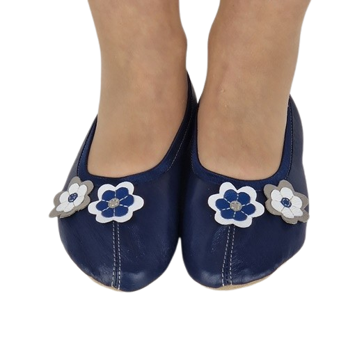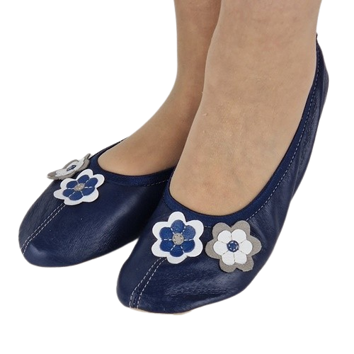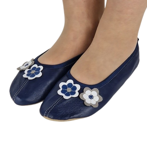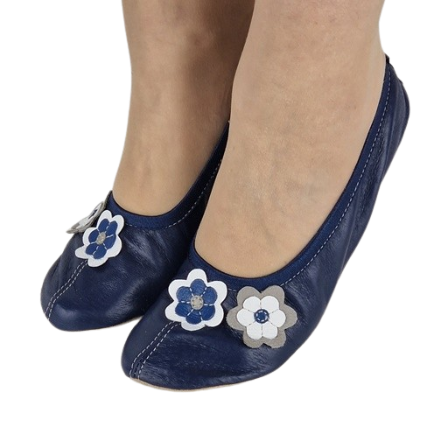 Baleriny baletki skórzane granatowe z kwiatkami do tańca po domu