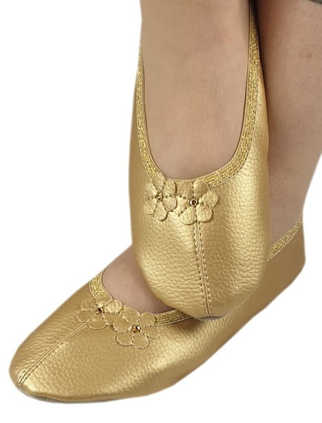 Baletki WYPRZEDAŻ złote z kwiatuszkami