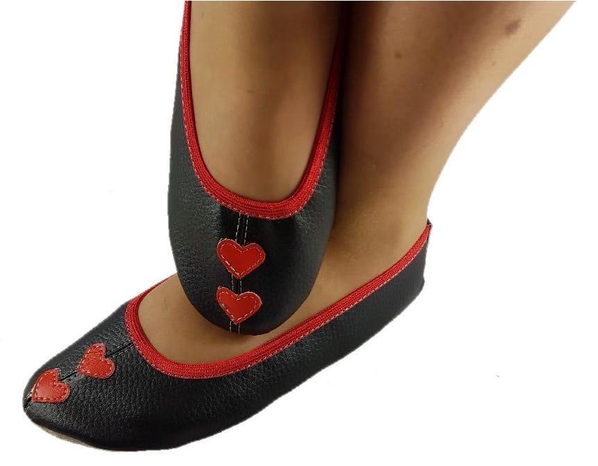 Baletki czarne z sercami