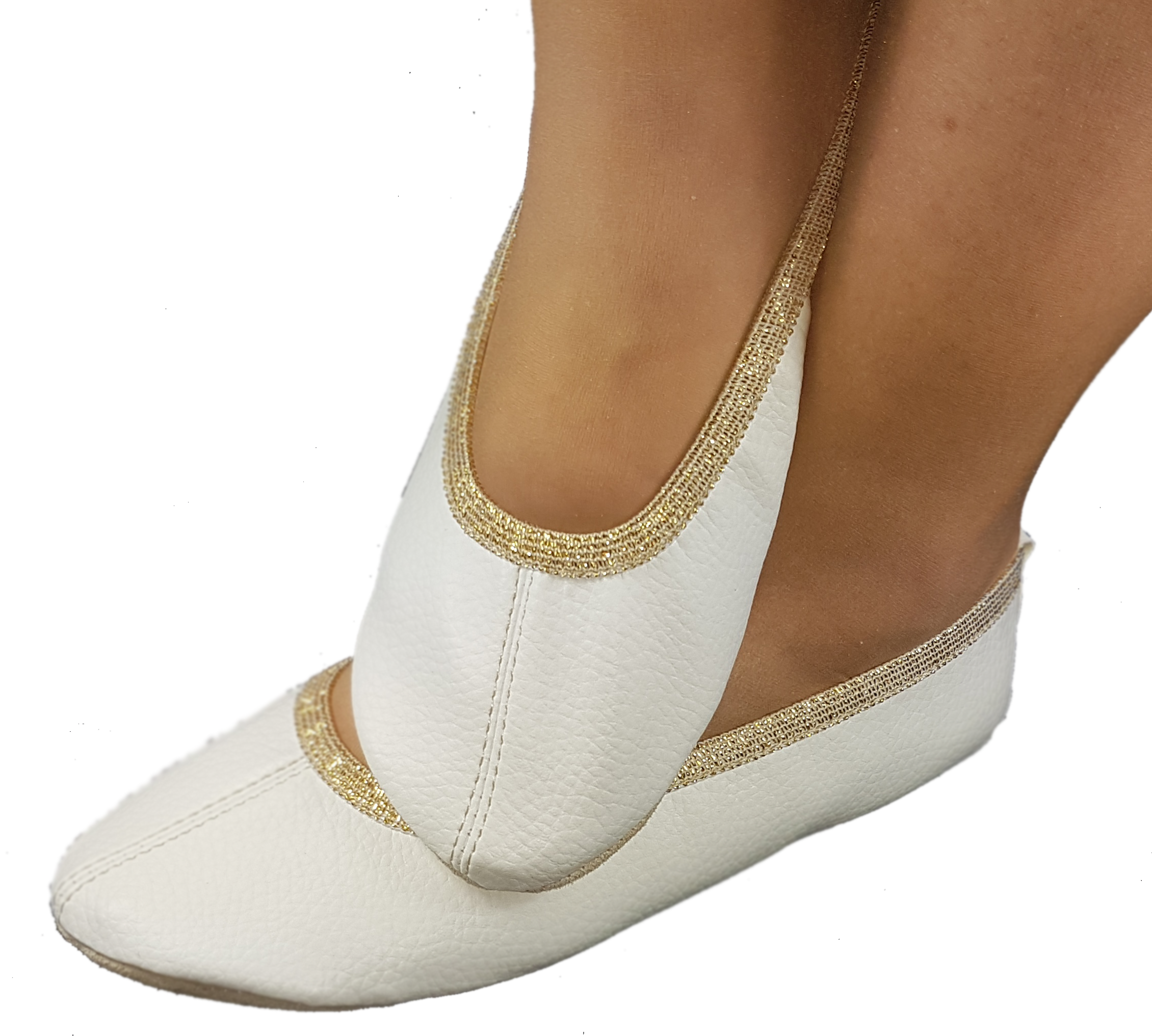 Baletki ekoskóra biała zwykłe złota gumka
