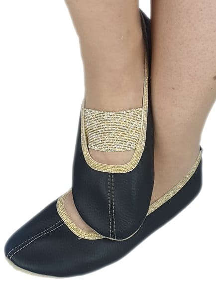 Baletki ekoskóra czarne gumka prosta biało-złota
