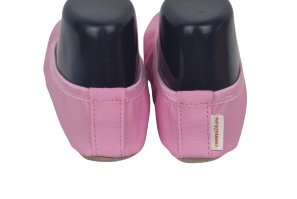Baletki ekoskóra rożowe gumka na krzyż podeszwa syntetyczna