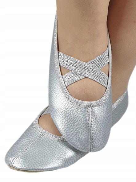 Baletki ekoskóra srebrne gumka na krzyż