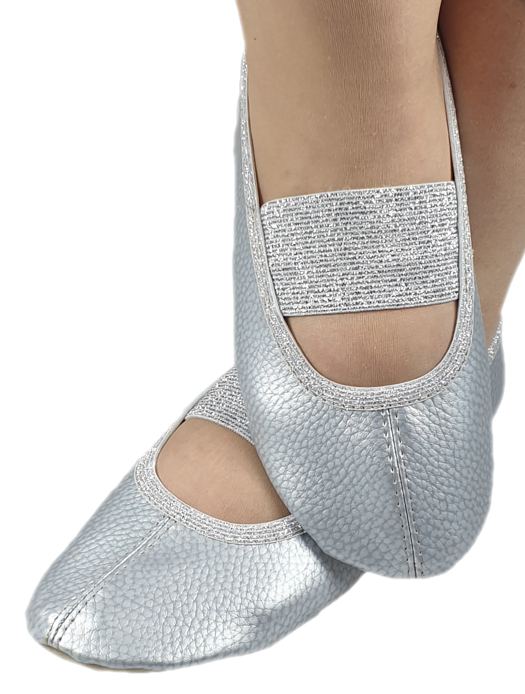 Baletki ekoskóra srebrne gumka prosta srebrna