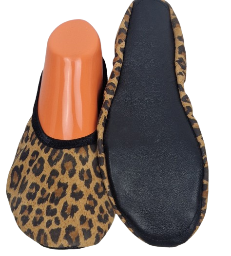 Baletki kozia skóra z wzorem panterki