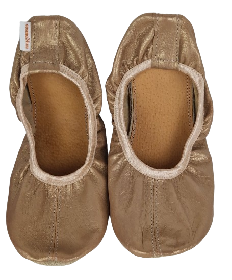 Baletki skórzane złote beżowa gumka R. 24-48