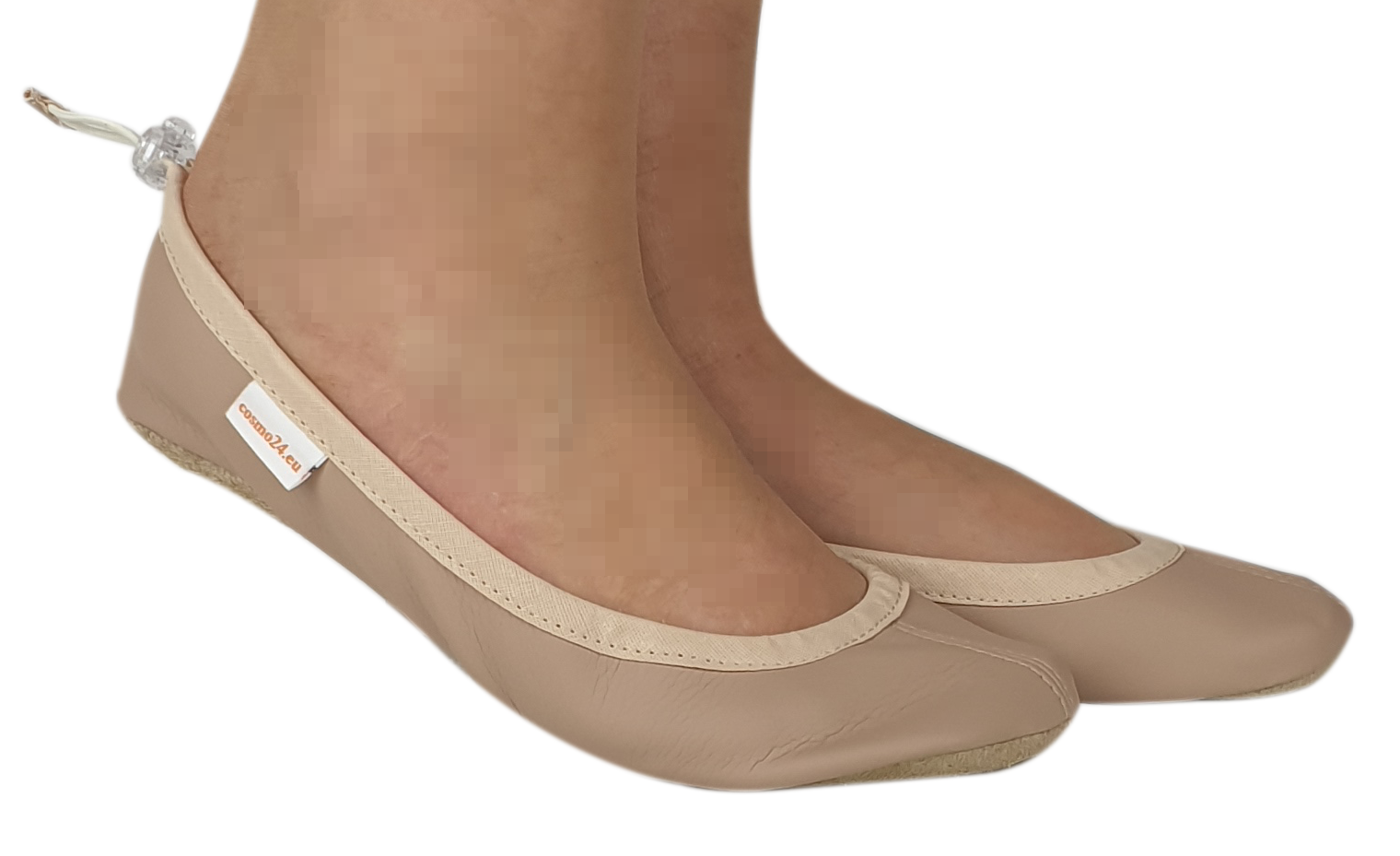 Baletki typu soft sole wspierają prawidłowy rozwój stopy. Naturalna skóra zamszowa (dwoina cielęca) zastosowana na podeszwy sprawia, że baletki się nie ślizgają, dają naturalny opór stopie. Wewnątrz jest druga warstwa skóry naturalnej, aby stopie było miękko. Taka podeszwa sprawia, że delikatna skóra oddycha i nie poci się. Pamiętajmy, aby dbać o nasze stopy. Wzmocniona podeszwa daje dłuższą żywotność. Zewnętrzna warstwa to dwoina cielęca, która posiada naturalną właściwość antypoślizgową, wewnętrzna warstwa to skóra podszewkowa. Aby można było samemu wyregulować naciąg gumki na baletce wprowadziliśmy z tyłu regulację, przytrzymywaną przez stoper. Baletki są wygodne i wytrzymałe. Baletki przeznaczone do tańca, rytmiki, ćwiczeń na siłowni, a także do chodzenia "po domu", łatwo zabrać je ze sobą "w gości". Wygodne i lekkie. Wykonane są w klasycznych rozmiarach. Istnieje możliwość wyboru rozmiaru od 24-44. Posiadamy różne wzory i kolory. Zapraszamy do kupna.