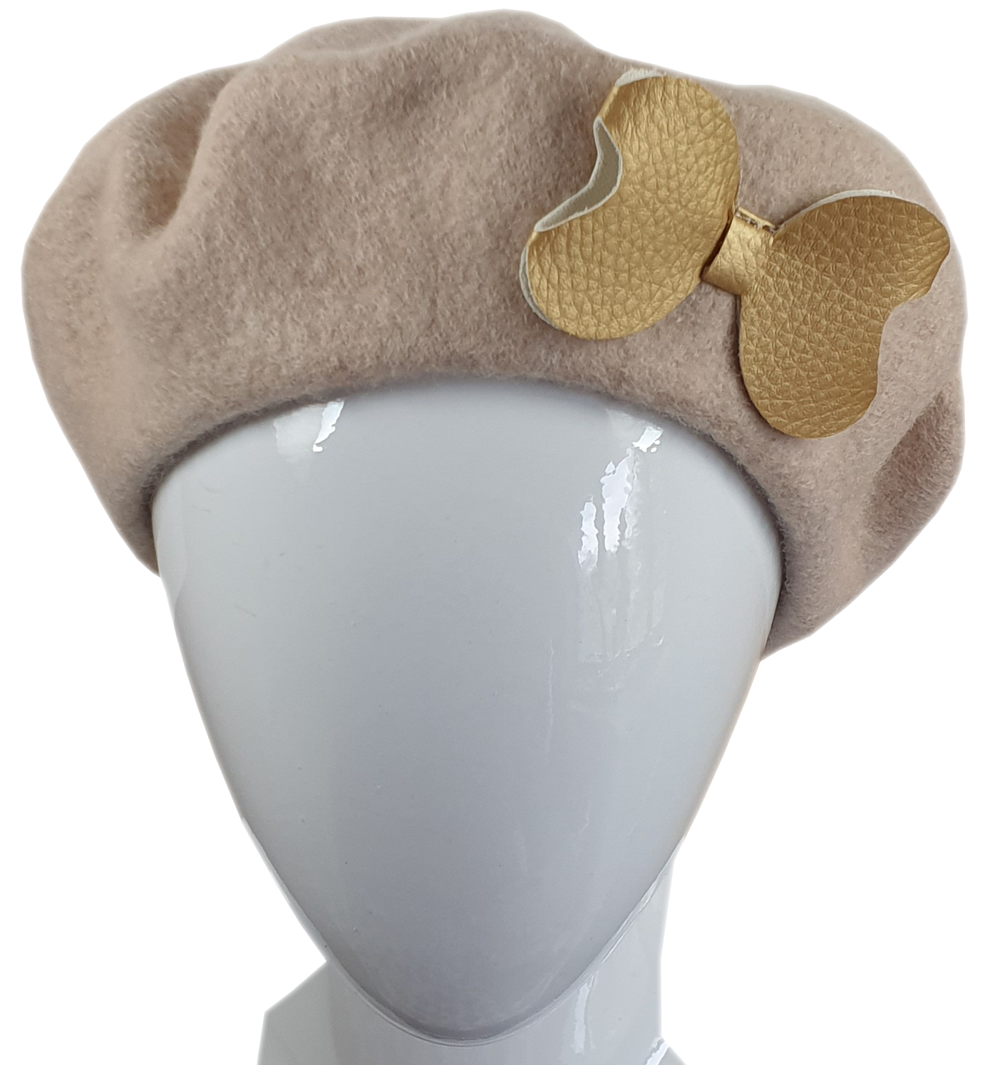 Beret beżowy z kokardą młodzieżowy