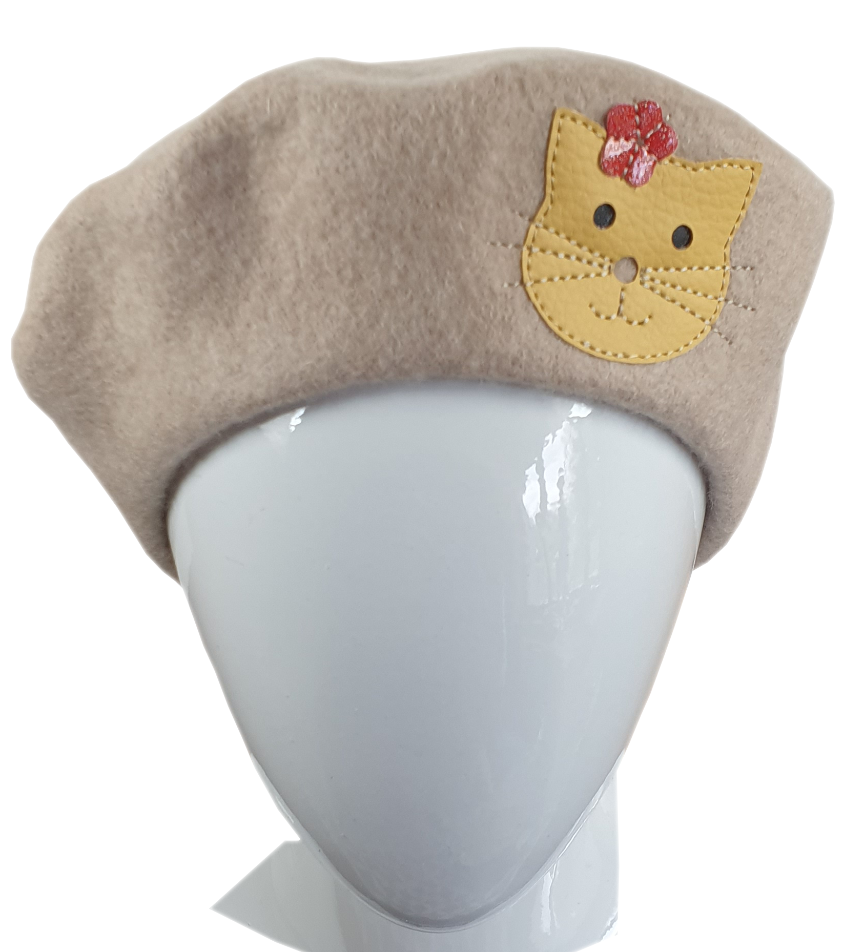 Beret beżowy z kotkiem dziecięcy
