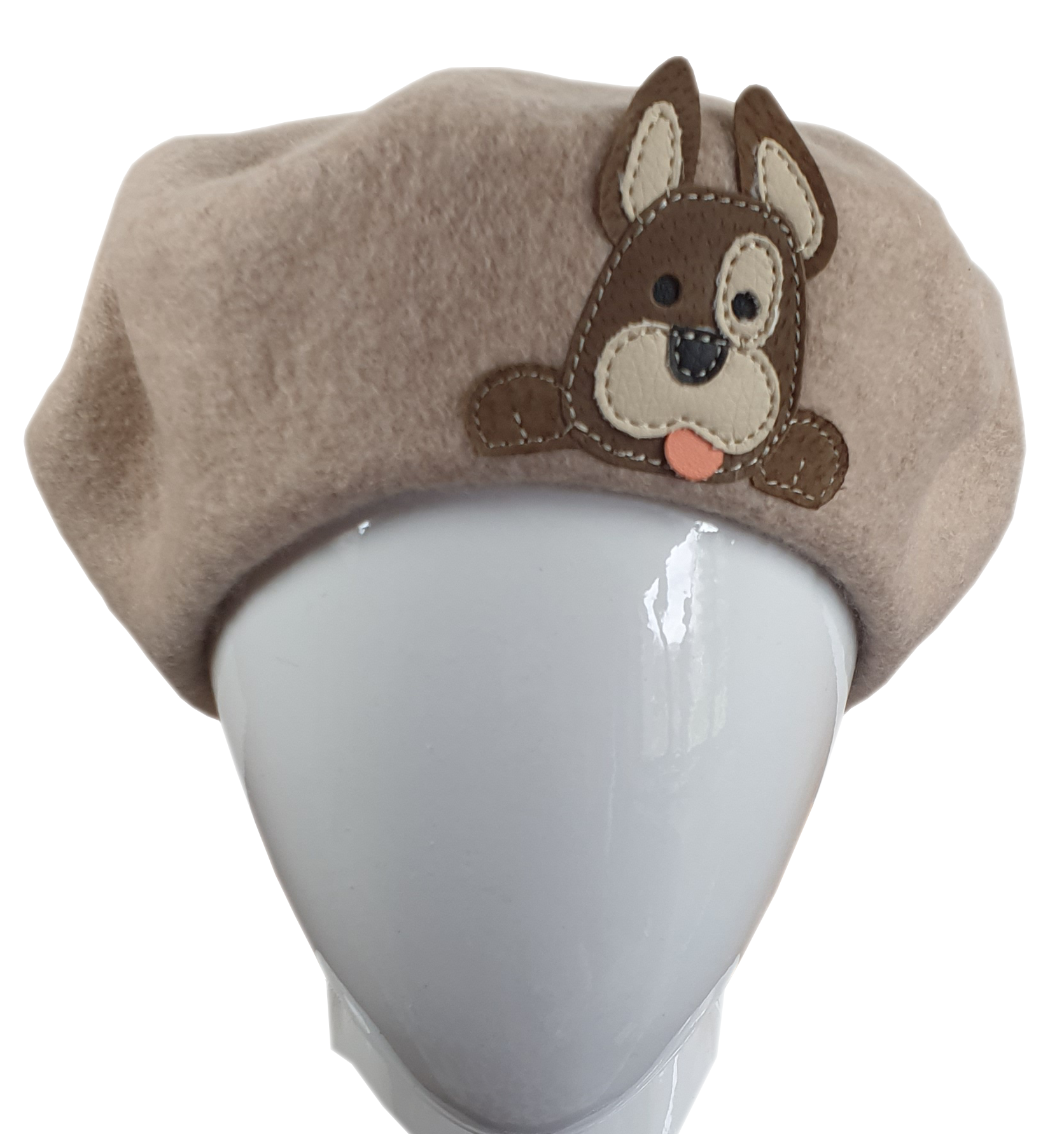 Beret beżowy z pieskami młodzieżowy