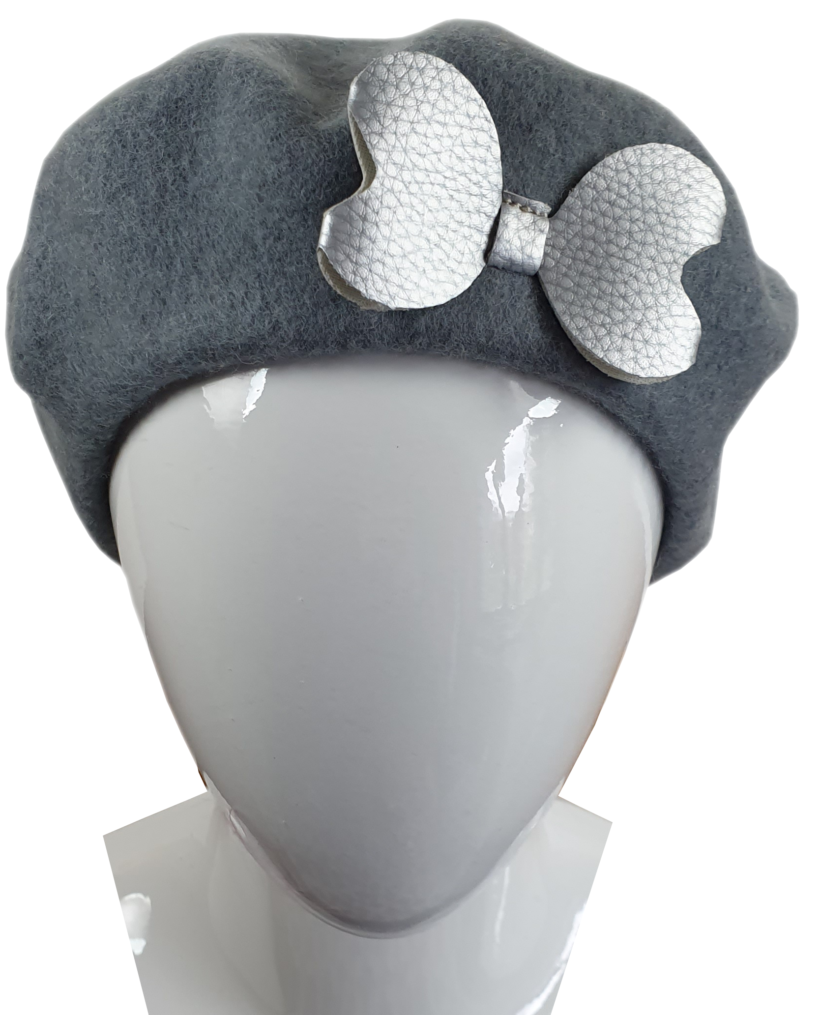 Beret popielaty z kokardą dziecięcy
