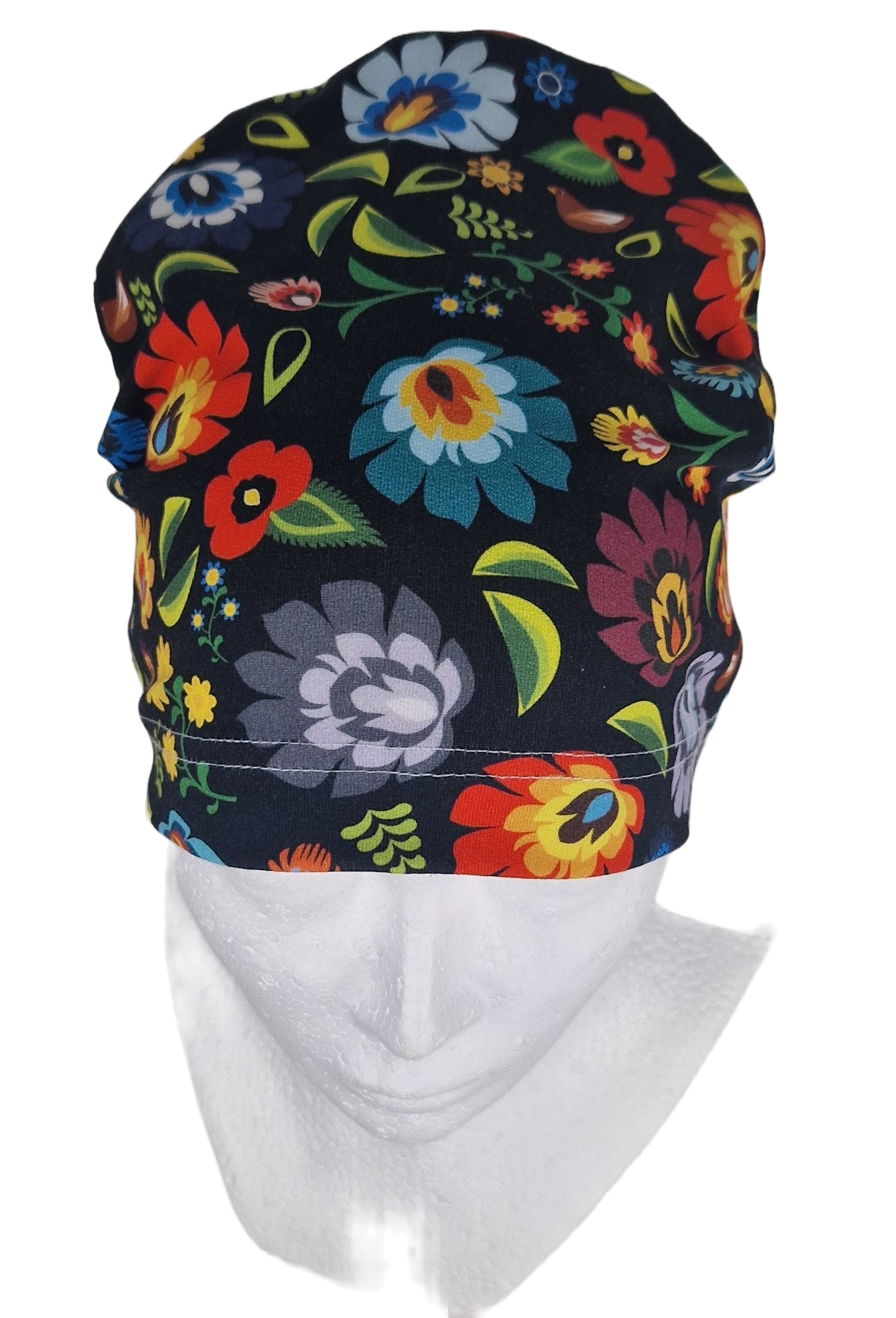 Bawełniana czapka z pięknym folkowym nadrukiem.