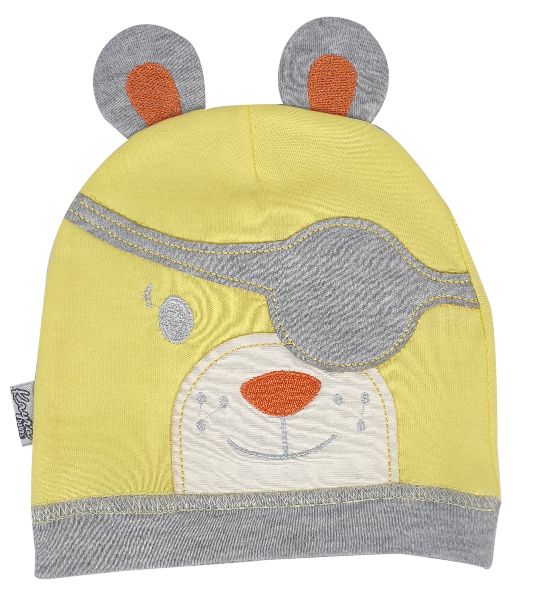 Podwójna warstwa kolorowej dzianiny powoduje, że czapeczka fajnie przylega. Piękna aplikacja z przodu wygląda bardzo ładnie. Taka czapka może być dopełnieniem stylizacji naszej pociechy.