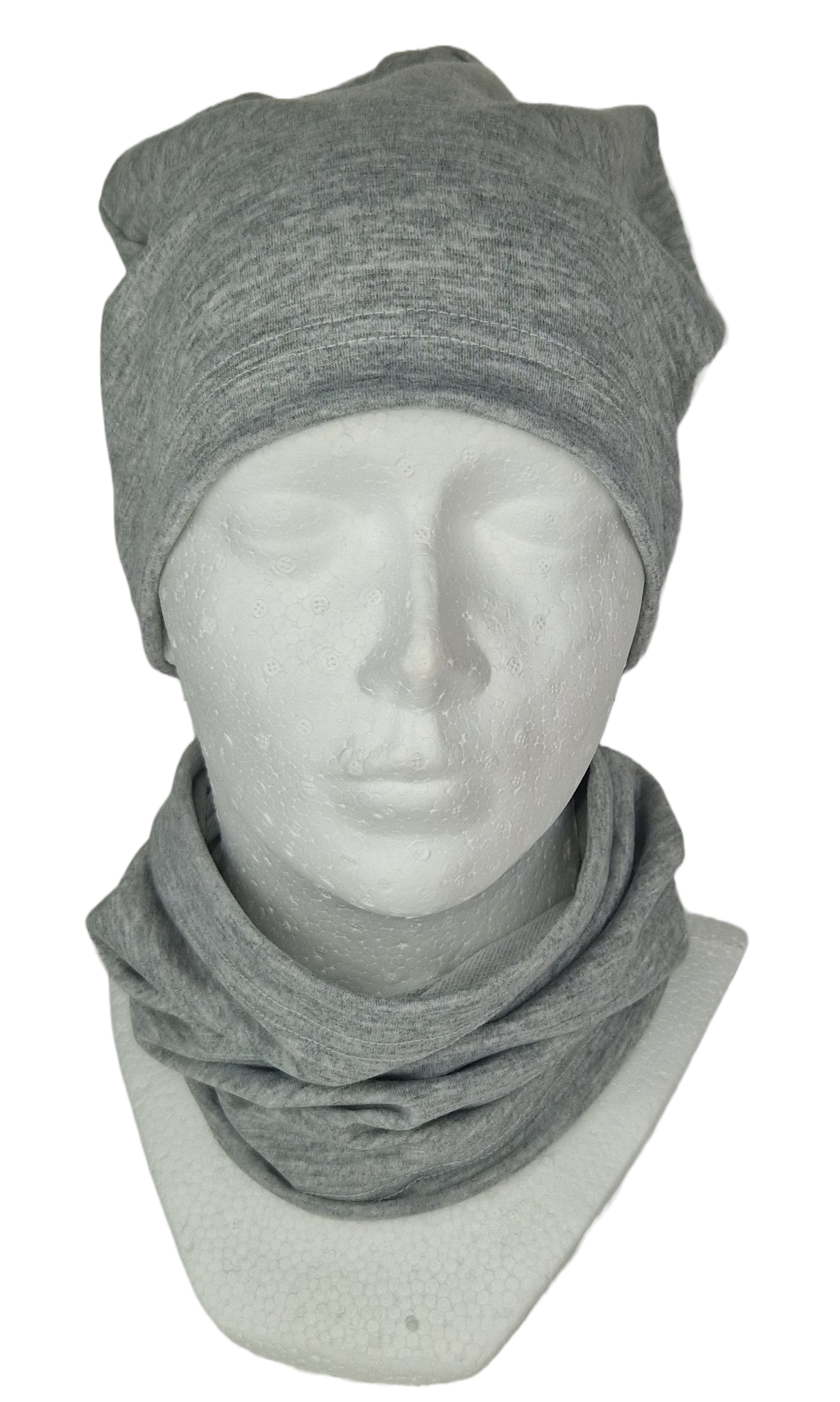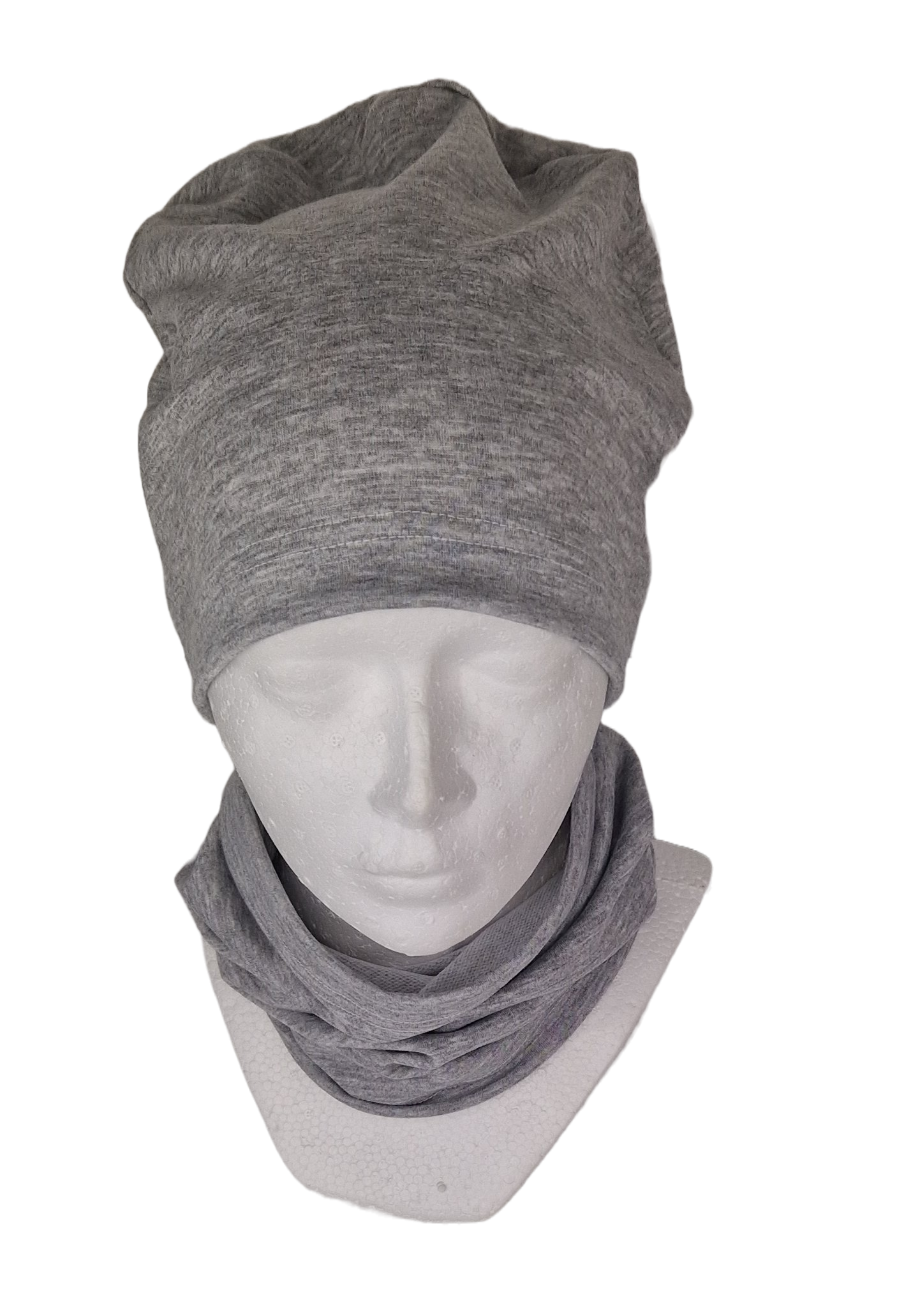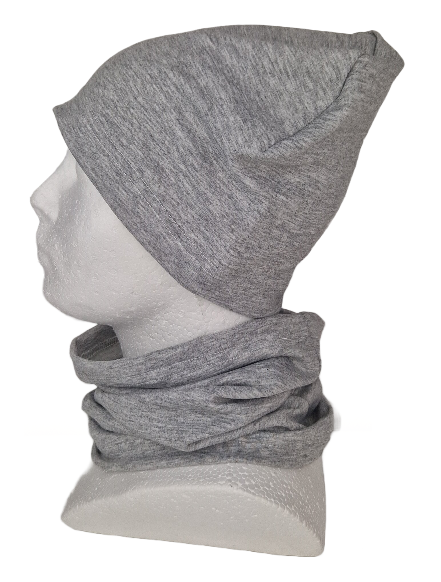 Bawełniana czapka i komin w kolorze popielatego melanżu.