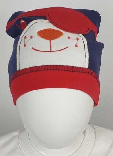 Podwójna warstwa kolorowej dzianiny powoduje, że czapeczka fajnie przylega. Piękna aplikacja z przodu wygląda bardzo ładnie. Taka czapka może być dopełnieniem stylizacji naszej pociechy.
