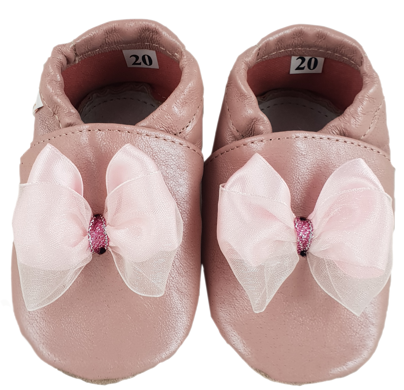 Dreptulki licowe elegantki z kokardą perłowy róż