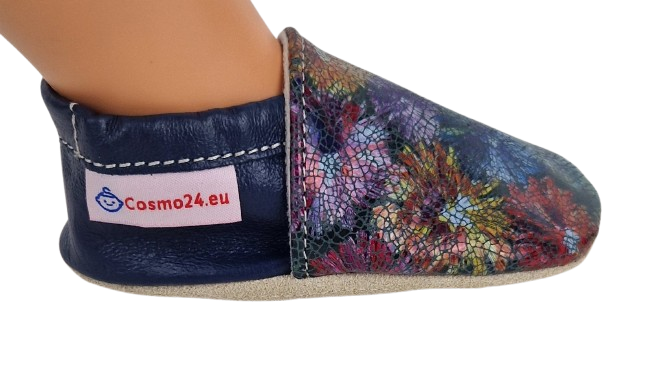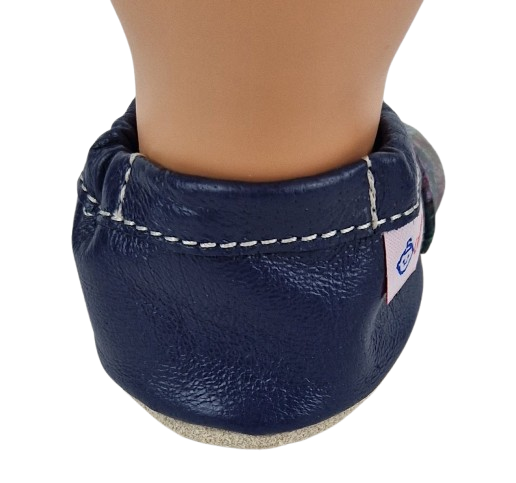 Dreptulki typu soft sole wspierają prawidłowy rozwój stopy dziecka. Naturalna skóra zamszowa (dwoina cielęca) zastosowana na podeszwy sprawia, że buciki się nie ślizgają, dają naturalny opór stopie. Taka podeszwa sprawia, że delikatna skóra dziecka oddycha i nie poci się. Pamiętajmy, aby dbać o maleńkie stopki. Wewnątrz jest wszyta dzianina (ocieplenie), aby małej stopcie było miękko i cieplutko. Wzmocniona podeszwa daje dłuższą żywotność. Użyta dwoina ta posiada naturalne właściwości antypoślizgowe. Jeśli podeszwa się zabrudzi wystarczy włos poruszyć szczotką, lub po prostu wyprać dreptulki w max. 30stopniach. Wewnątrz jest druga warstwa skóry naturalnej, aby małej stopcie było miękko.