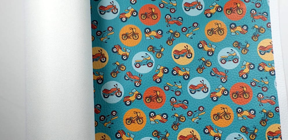 Wykonany na ekoskórze nadruk ze wzorem jednorożców jest bardzo trwały. Nośnik ekoskóry to tkanina poliestrowa. Powierzchnia z nadrukiem posiada delikatne przetłoczenia imitujące naturalną skórę.