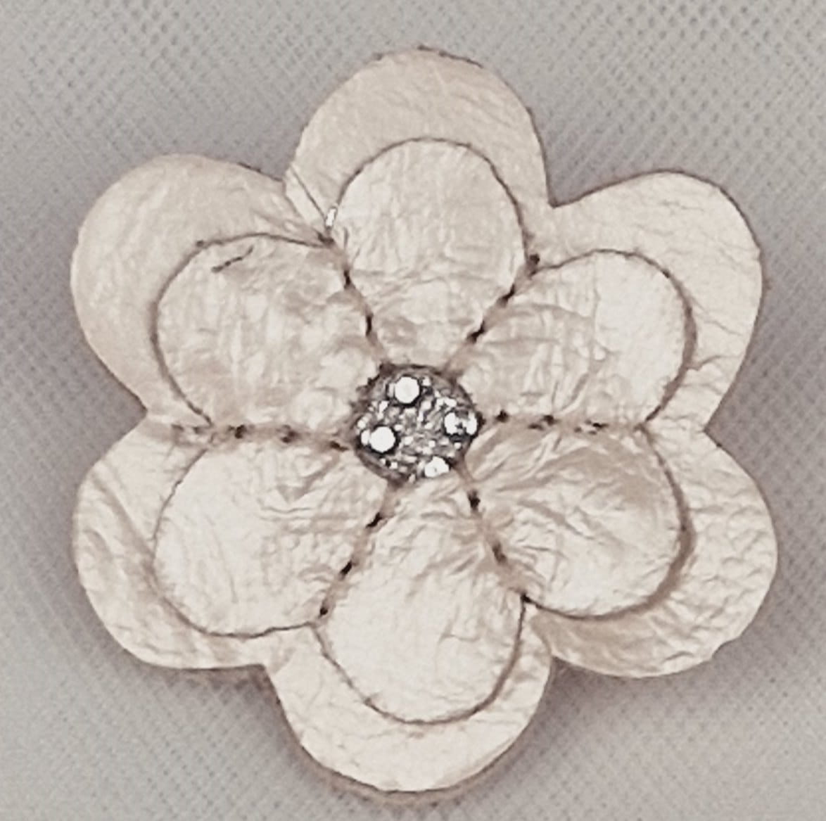 Gumka do włosów z podwójnym kwiatuszkiem. Ozdoba wykonana ze skóry naturalnej. Na środku wszyte błyszczące kryształki.