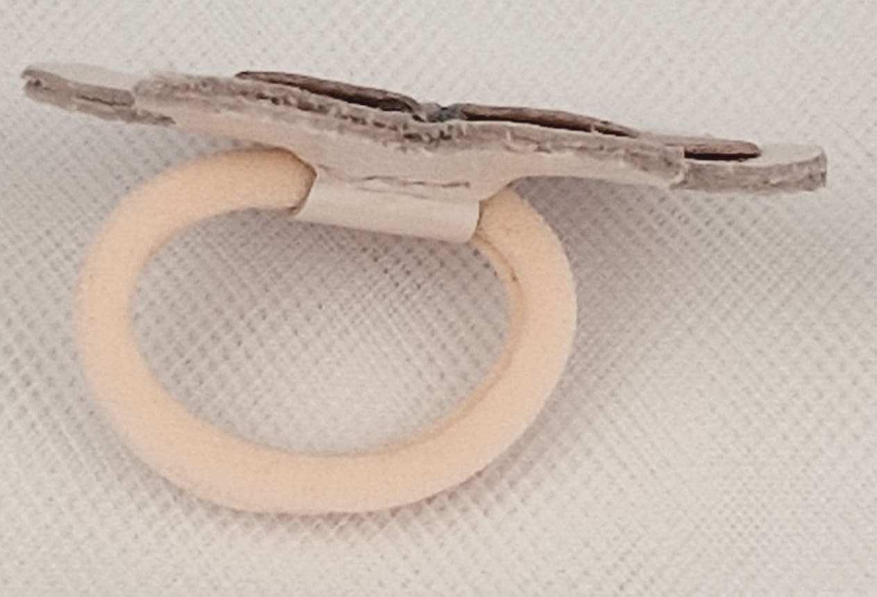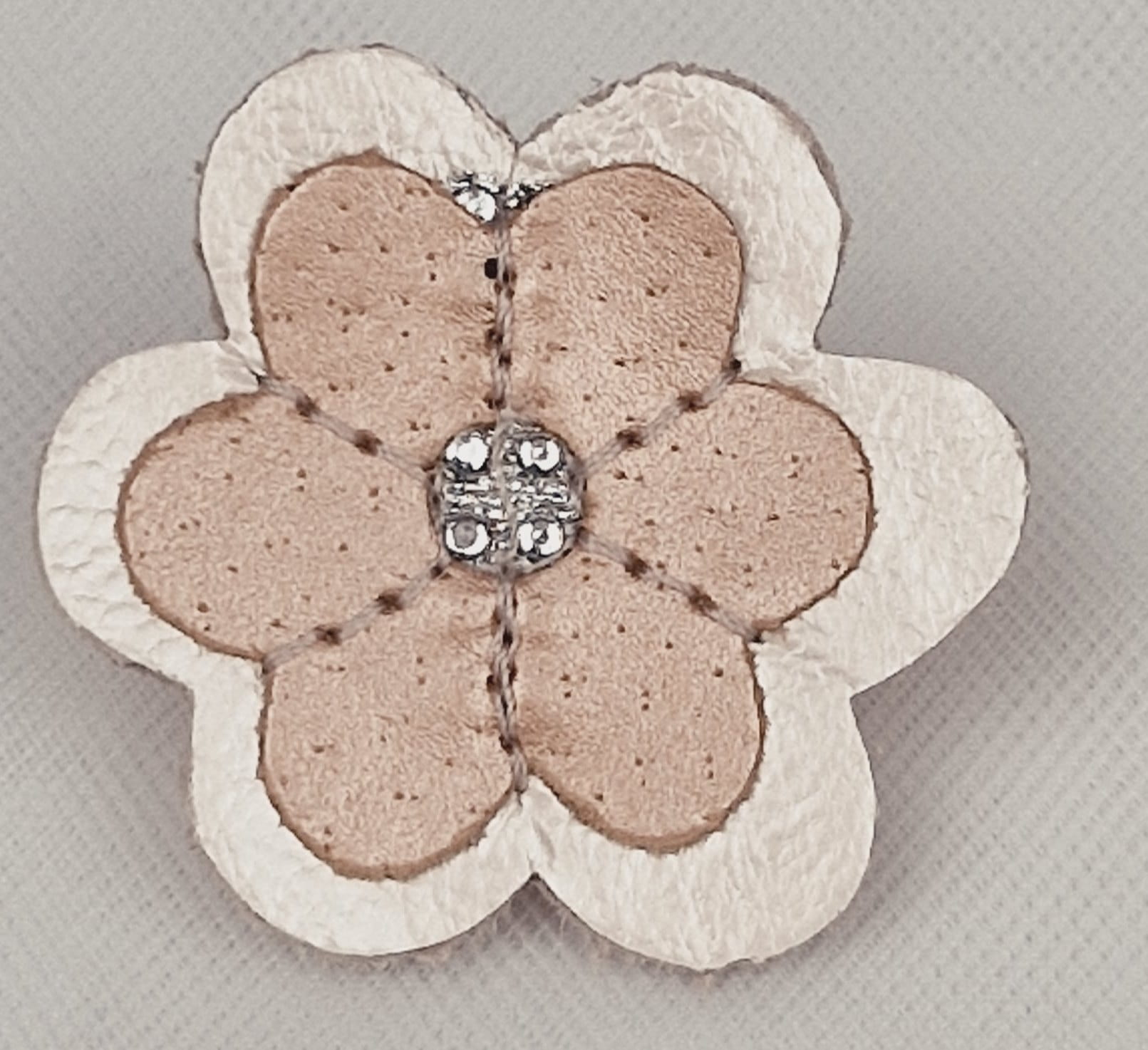 Gumka do włosów z podwójnym kwiatuszkiem. Ozdoba wykonana ze skóry naturalnej. Na środku wszyte błyszczące kryształki.