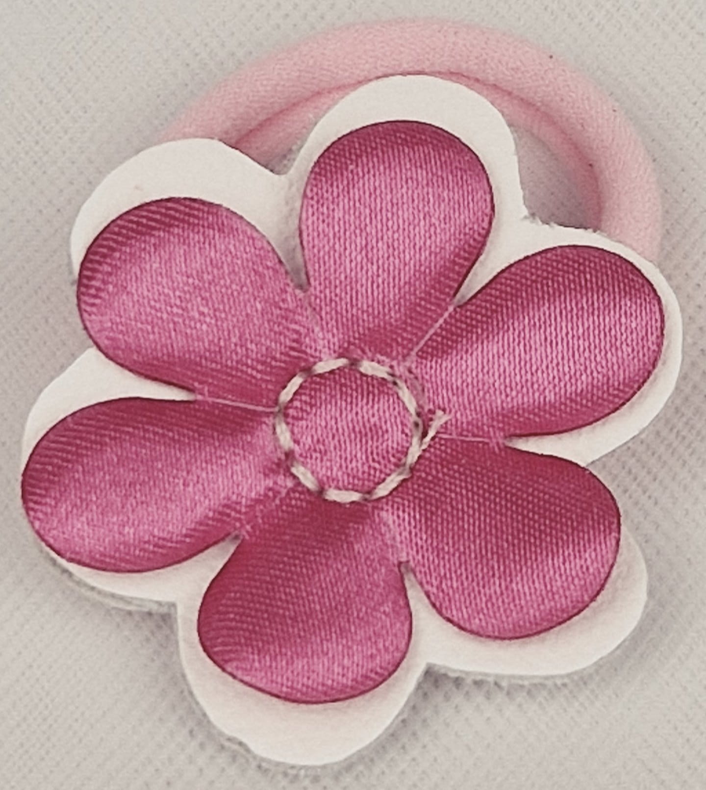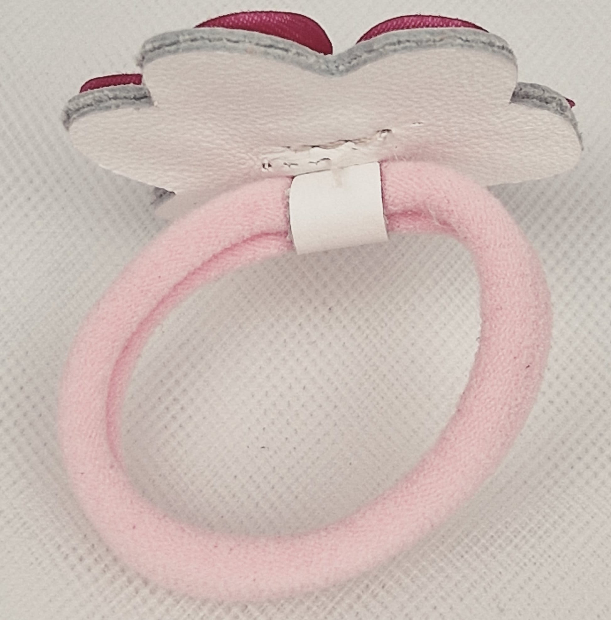 Gumka do włosów z podwójnym kwiatuszkiem. Ozdoba wykonana ze skóry naturalnej. Na środku wszyte błyszczące kryształki.