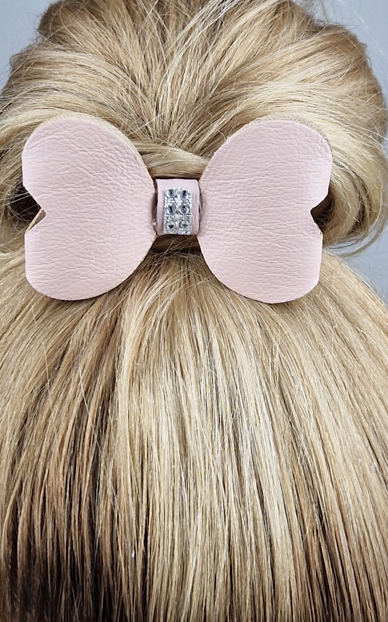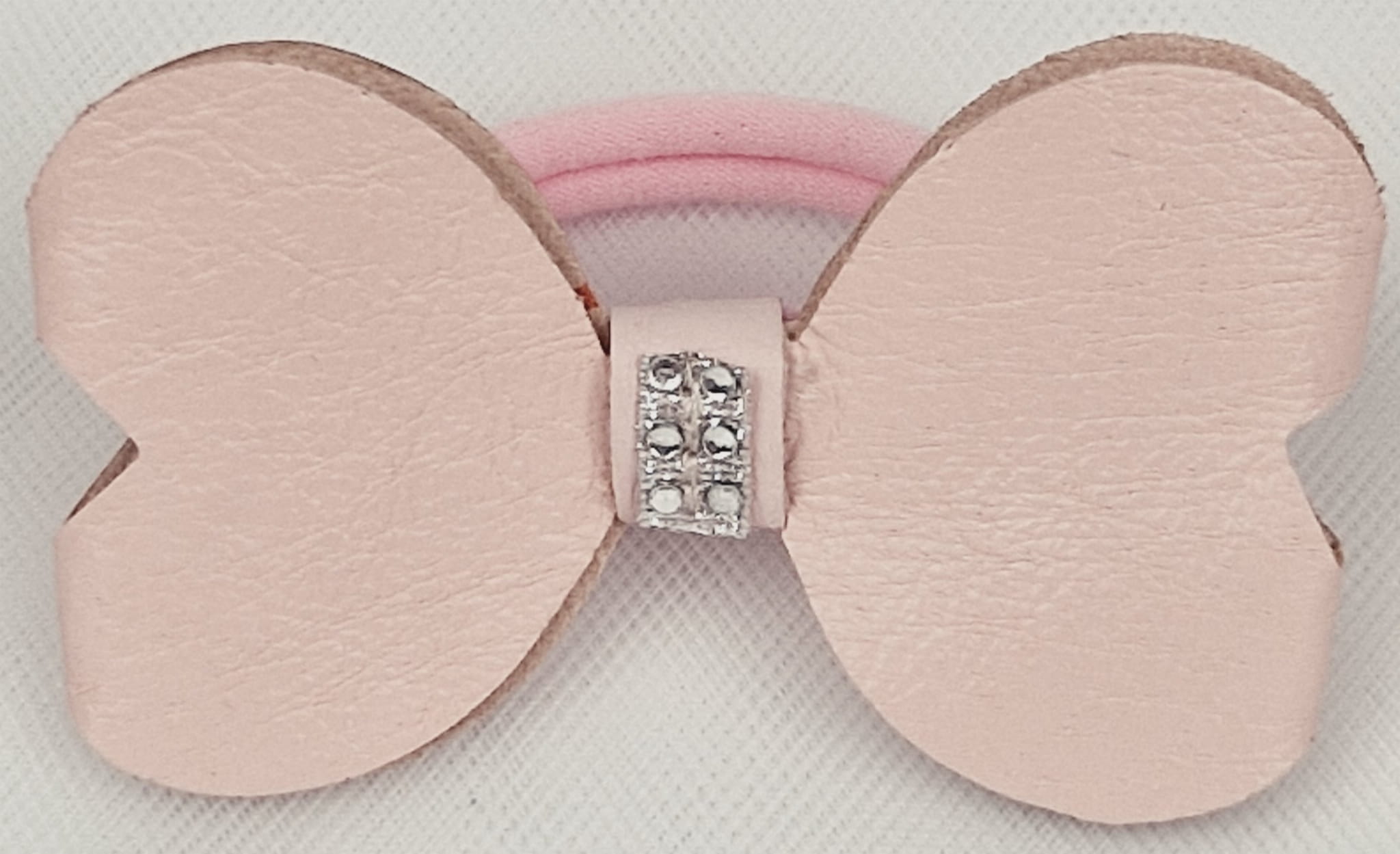 Gumka do włosów z kokardą. Kokarda wykonana ze skóry naturalnej. Na środku wszyte błyszczące kryształki.