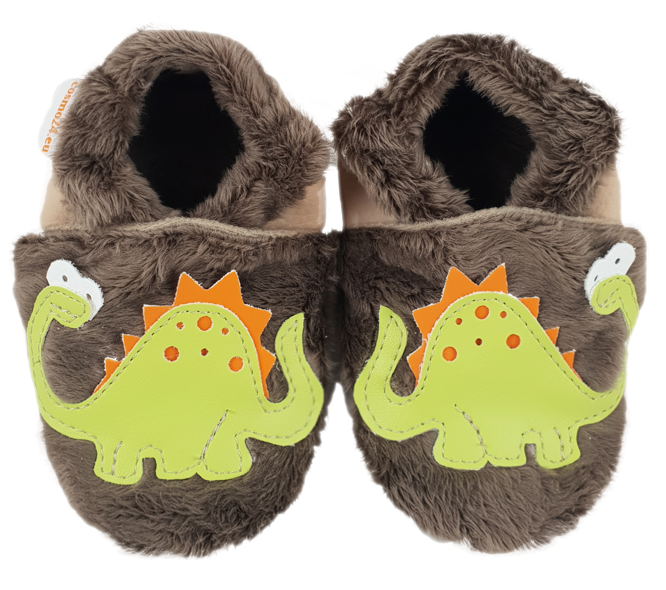 Kapcie Dreptulki Paputki ciepłe brązowe aplikacja dinozaur R. 18-34