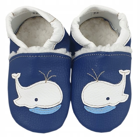 Kapcie Dreptulki Paputki ocieplane ekoskóra granat aplikacja wieloryb R. 20-34