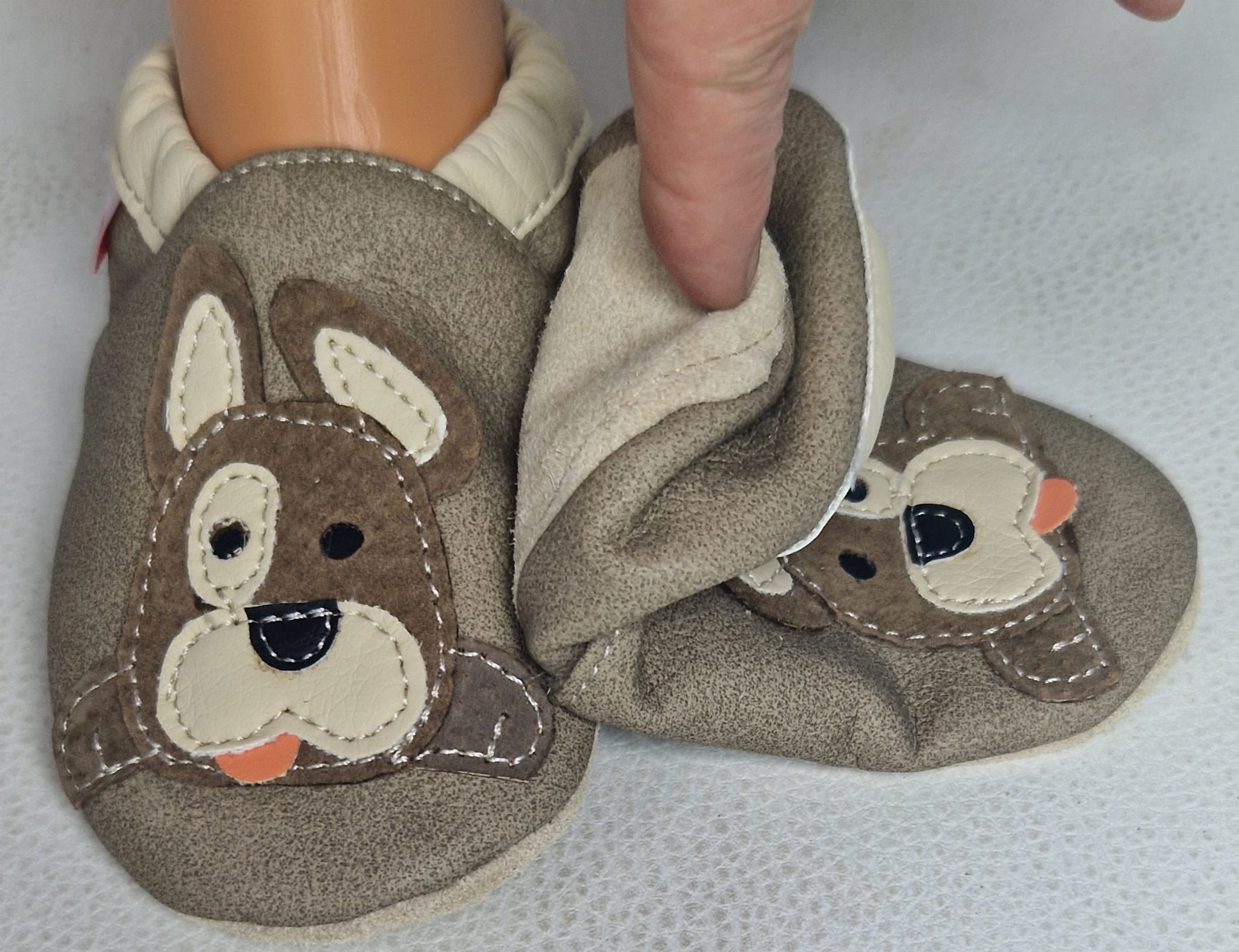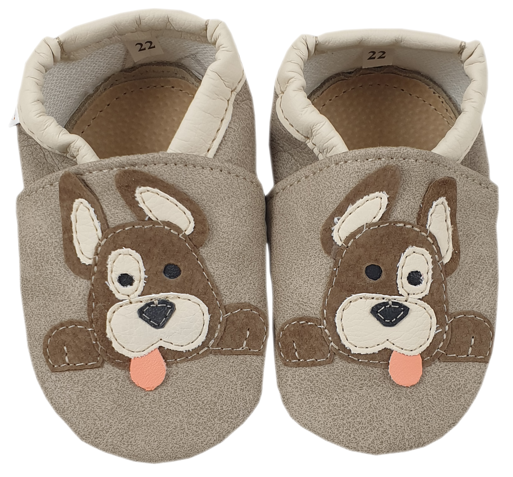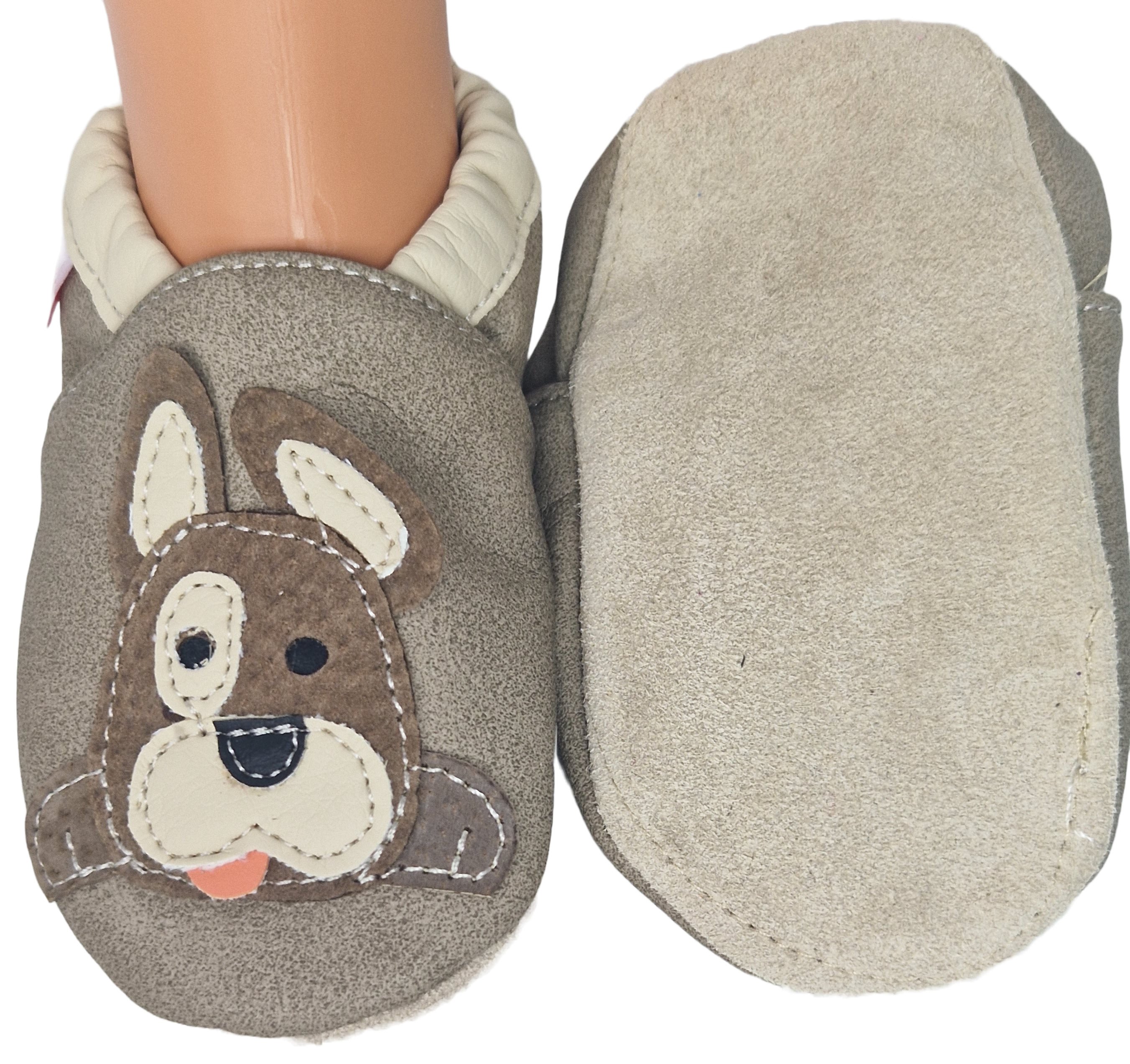 Kapcie Dreptulki ekoskóra beż aplikacja piesek wesoły r. 18-34
