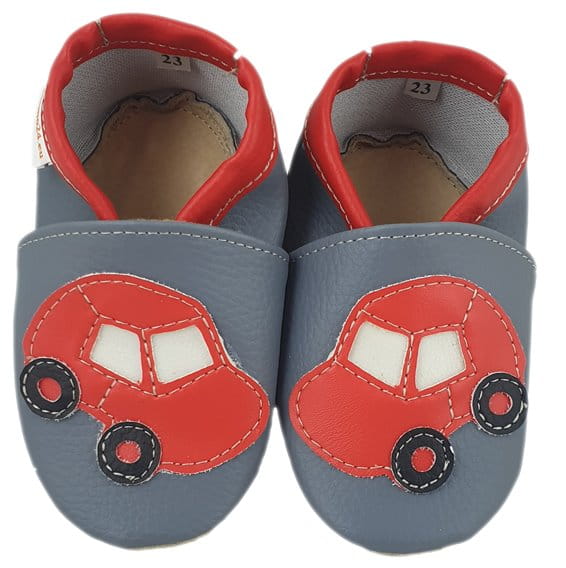 Kapcie Dreptulki ekoskóra popiel aplikacja samochód czerwony r. 18-34
