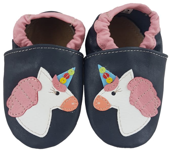 Kapcie Dreptulki skóra licowa granat aplikacja jednorożec r. 20-34