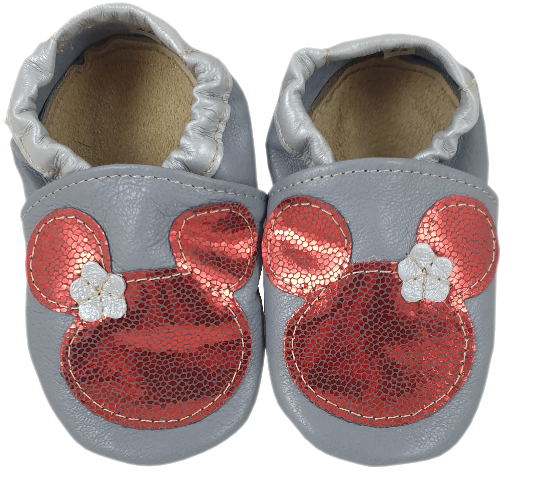 Kapcie Dreptulki skóra licowa popiel aplikacja myszka r. 20-34