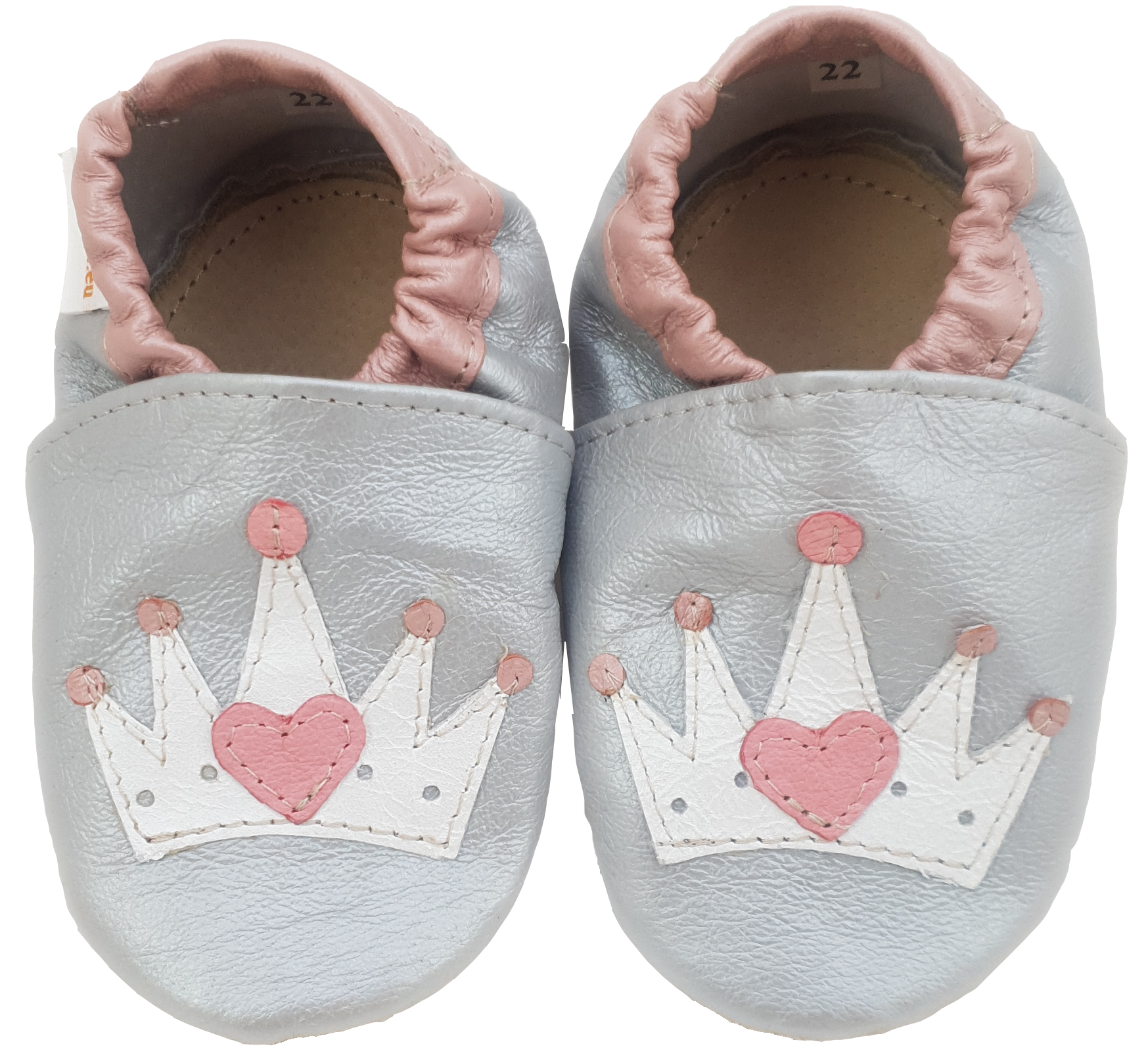 Kapcie Dreptulki skóra licowa srebrna aplikacja korona z serduszkami r. 20-34