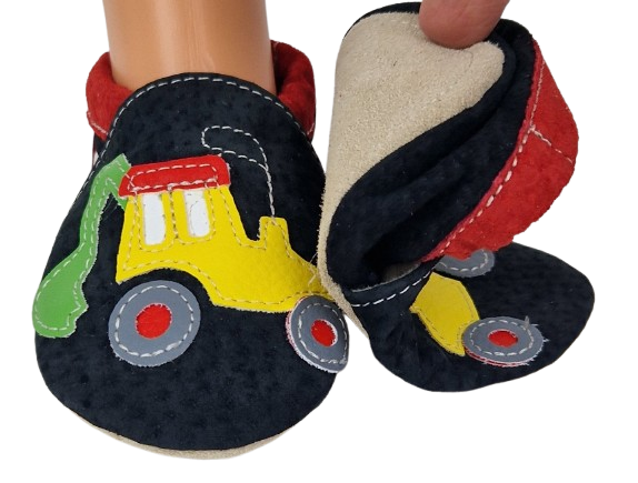 Kapcie Dreptulki skóra welur czarna aplikacja koparki r. 20-34