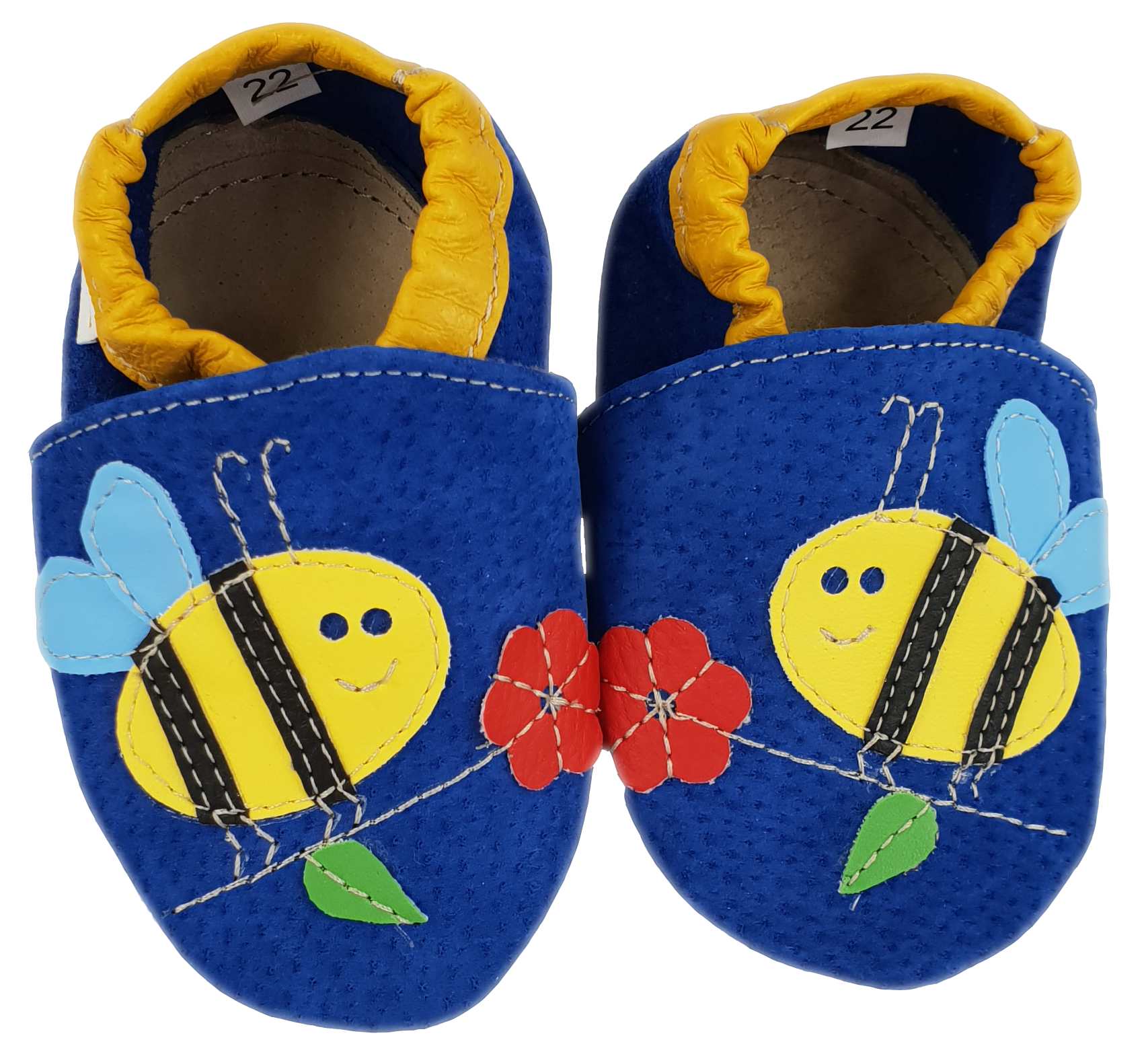 Kapcie Dreptulki skóra welur niebieski aplikacja pszczoły r. 20-34