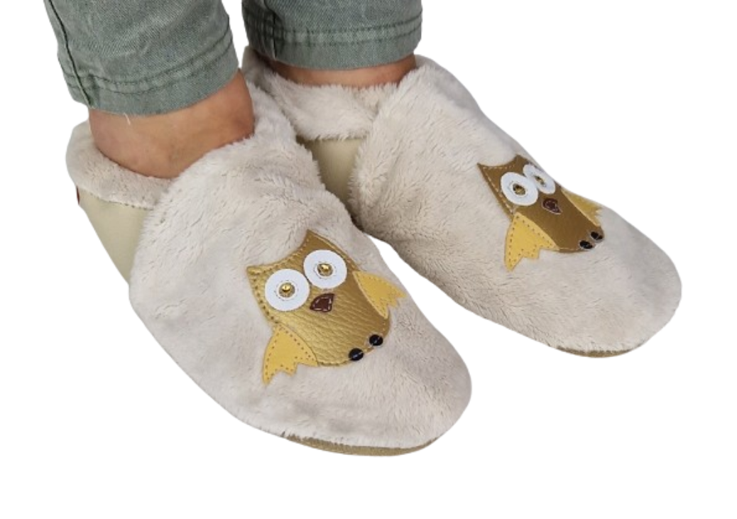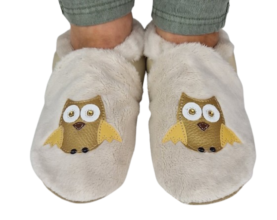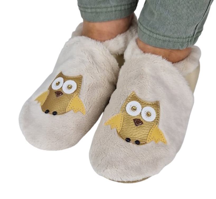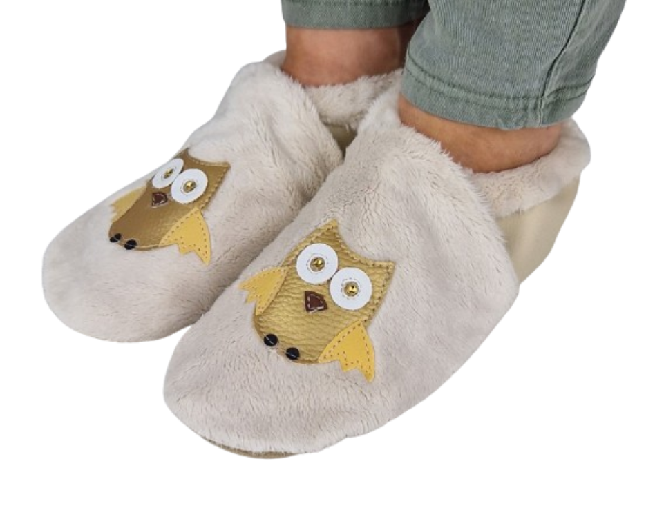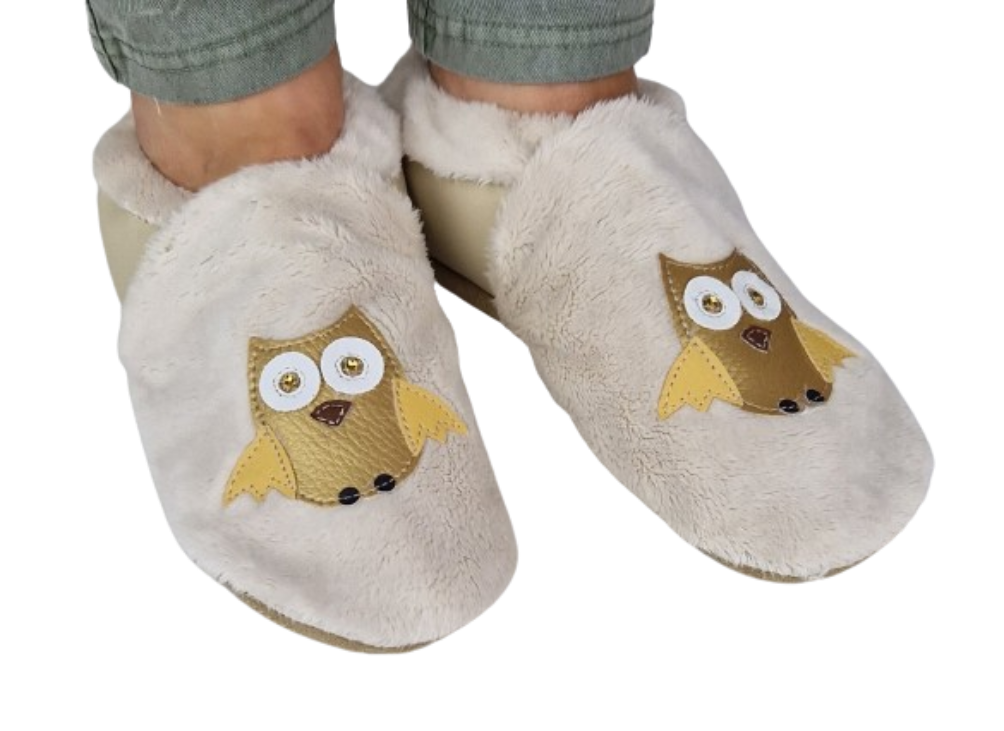 Kapcie ciepłe, miękkie, dreptule z sową