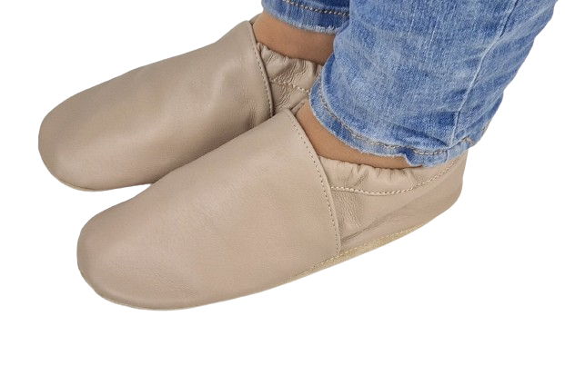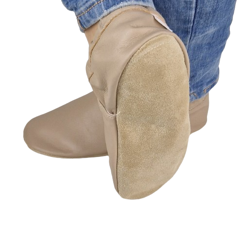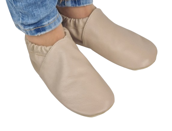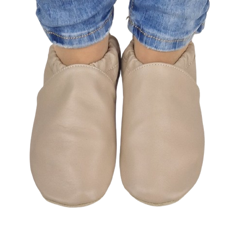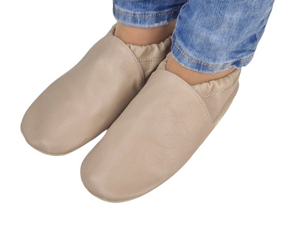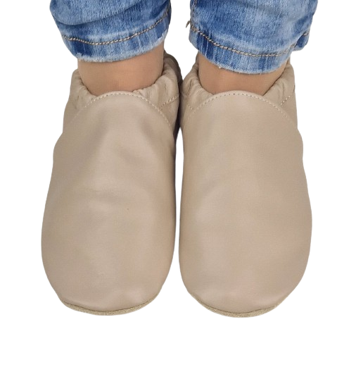 Prezentujemy kapcie - "nasze" dreptule" gładkie, beżowe skórzane:
