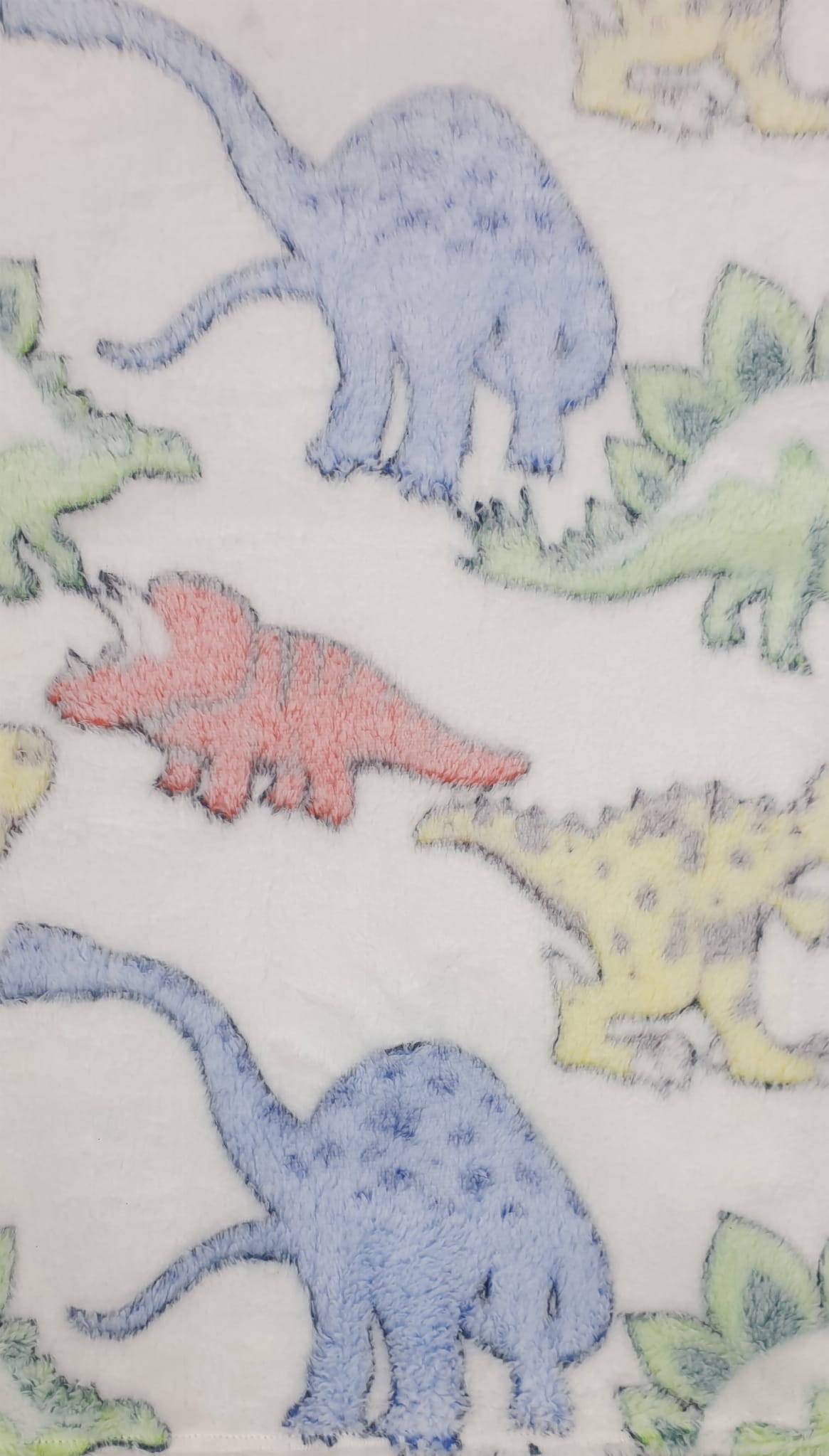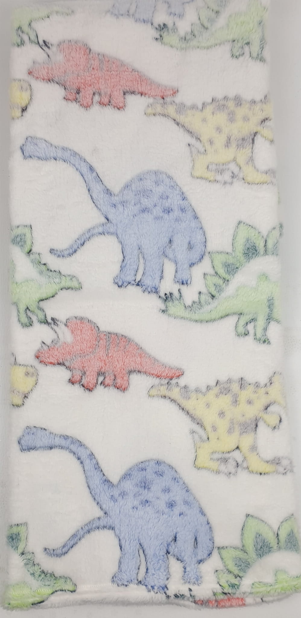 Delikatny kolorowy kocyk w dinozaury. Wymiary 100cm x 120cm. Skład: poliester.