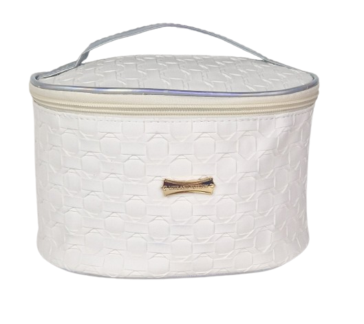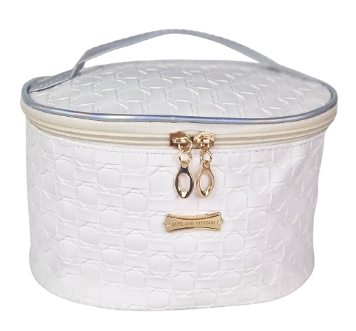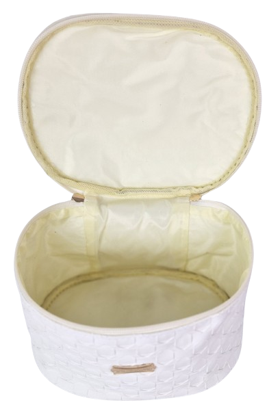 Idealna zarówno do użytku domowego, jak i w podróży – kosmetyczka kuferek w kolorze śmietankowym to niezbędnik każdej kobiety, która pragnie mieć swoje ulubione kosmetyki zawsze pod ręką w eleganckiej oprawie.