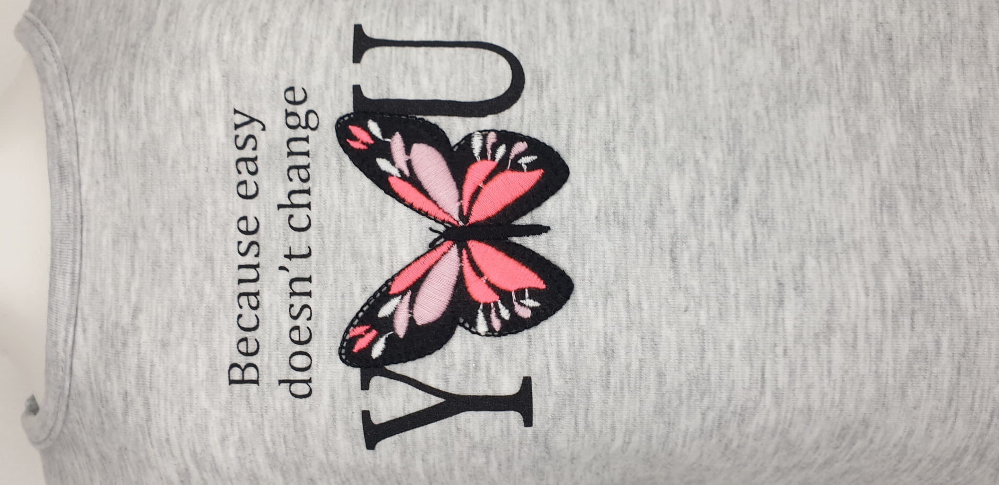 Koszulka, t-shirt z nadrukiem i drobnym haftem w kolorze popielatym. Bardzo porządna ścisła bawełna.