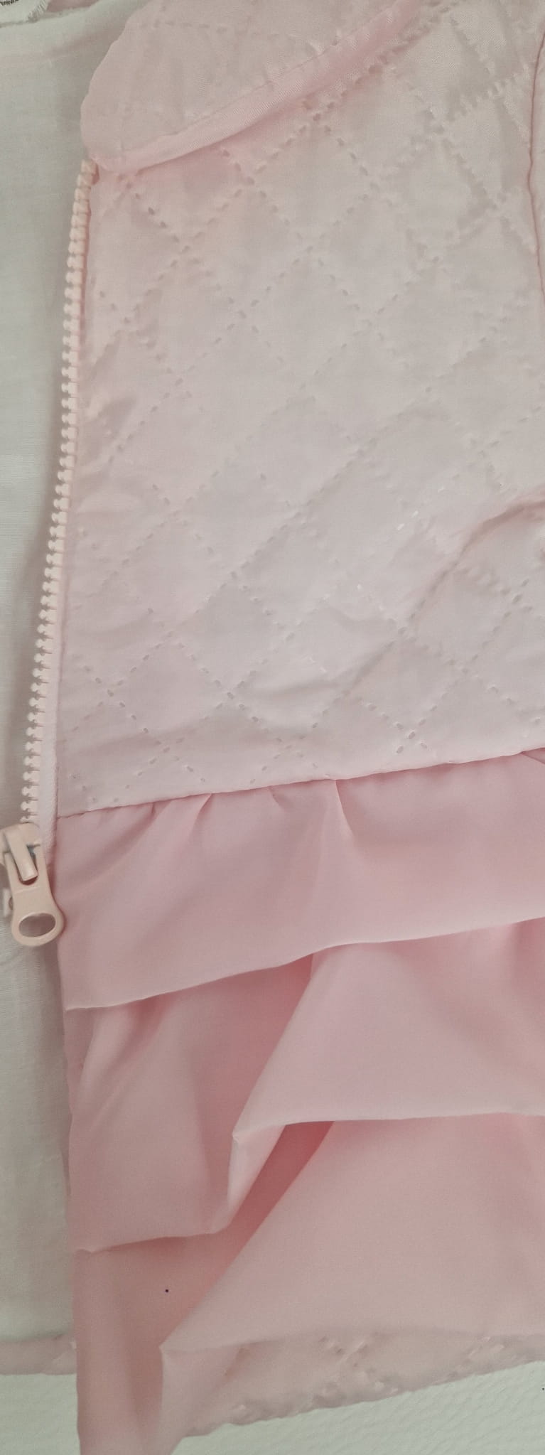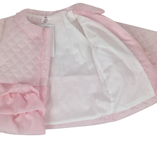 Różowa kurteczka dla dziewczynki z falbankami i zamek z bawełnianą podszewką to uroczy i stylowy dodatek do garderoby maluszka.