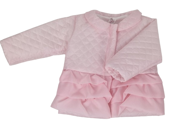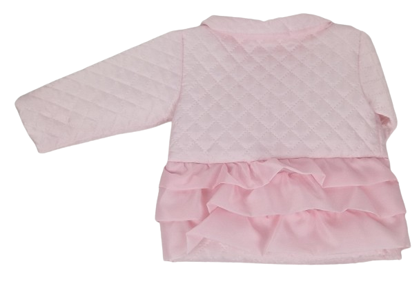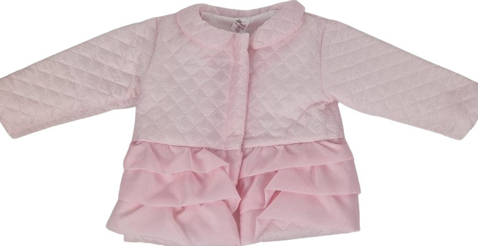 Wykonana z miękkiego materiału, zapewnia komfort i ciepło, idealne dla delikatnej skóry dziecka. Różowy kolor dodaje uroku i słodyczy, idealnie pasując do dziecięcej urody. Falbanki dodają subtelnego dziewczęcego uroku, nadając kurteczce wyjątkowego wyglądu, który z pewnością przyciągnie uwagę.