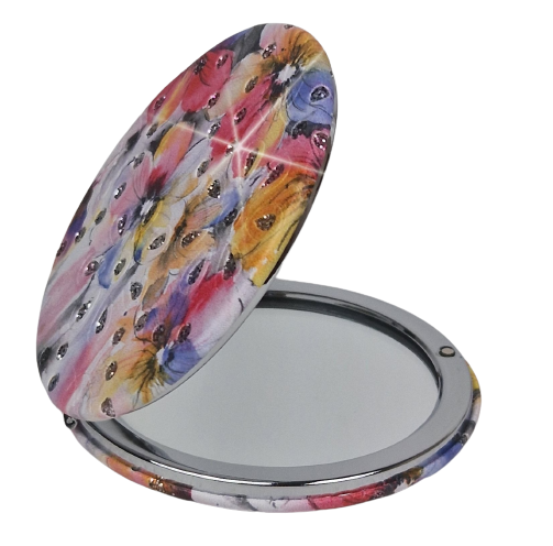 Piękna grafika w pastelowych kolorach. Wewnątrz dwustronne lusterka z normalnym odbiciem i powiększonym. Zamykane na delikatny magnez, dzięki czemu ładnie się domyka.