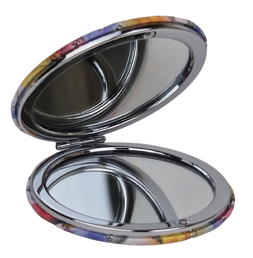 Podwójne lusterko do makijażu, wymiarowe do torebki, plecaka, lub nawet do kieszeni.