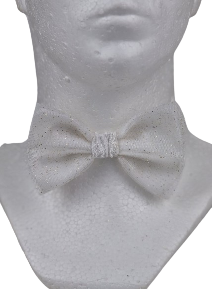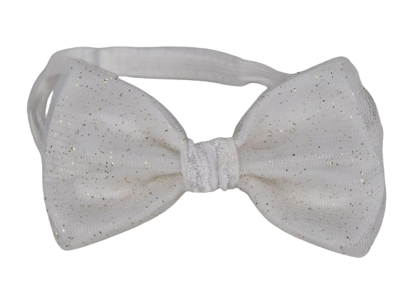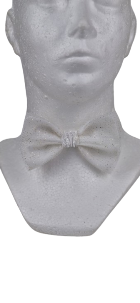Muszka dla chłopca, mucha biała z brokatem na rzep