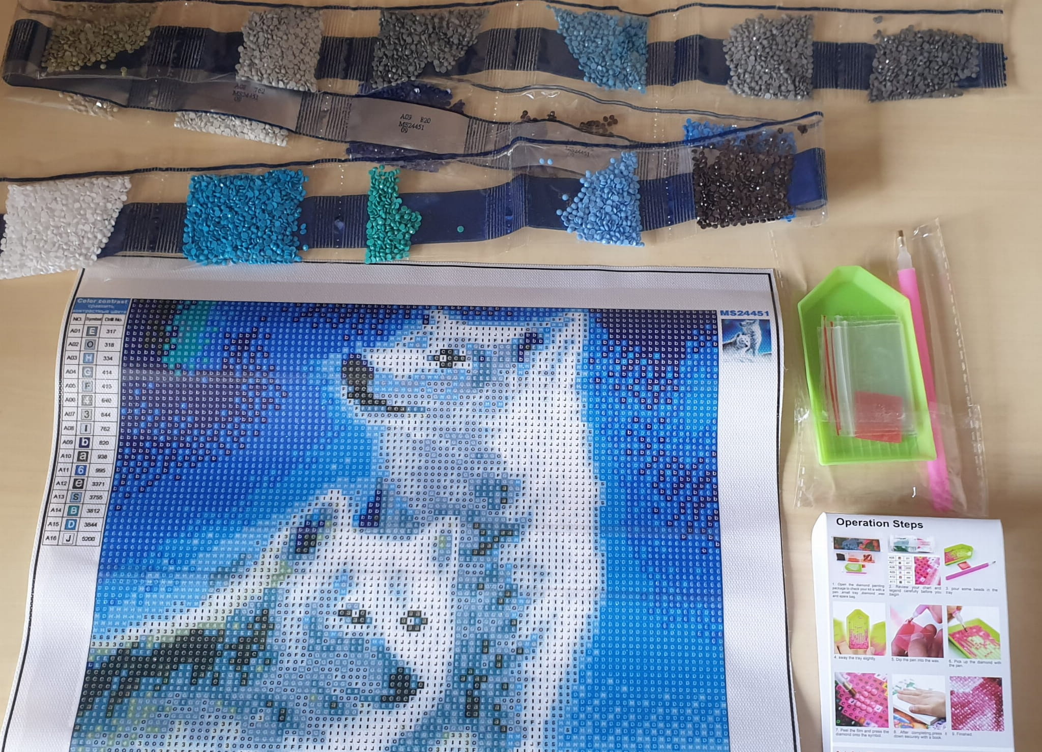 - rysik – aplikator do łapania, przekładania i nakładania diamencików,
