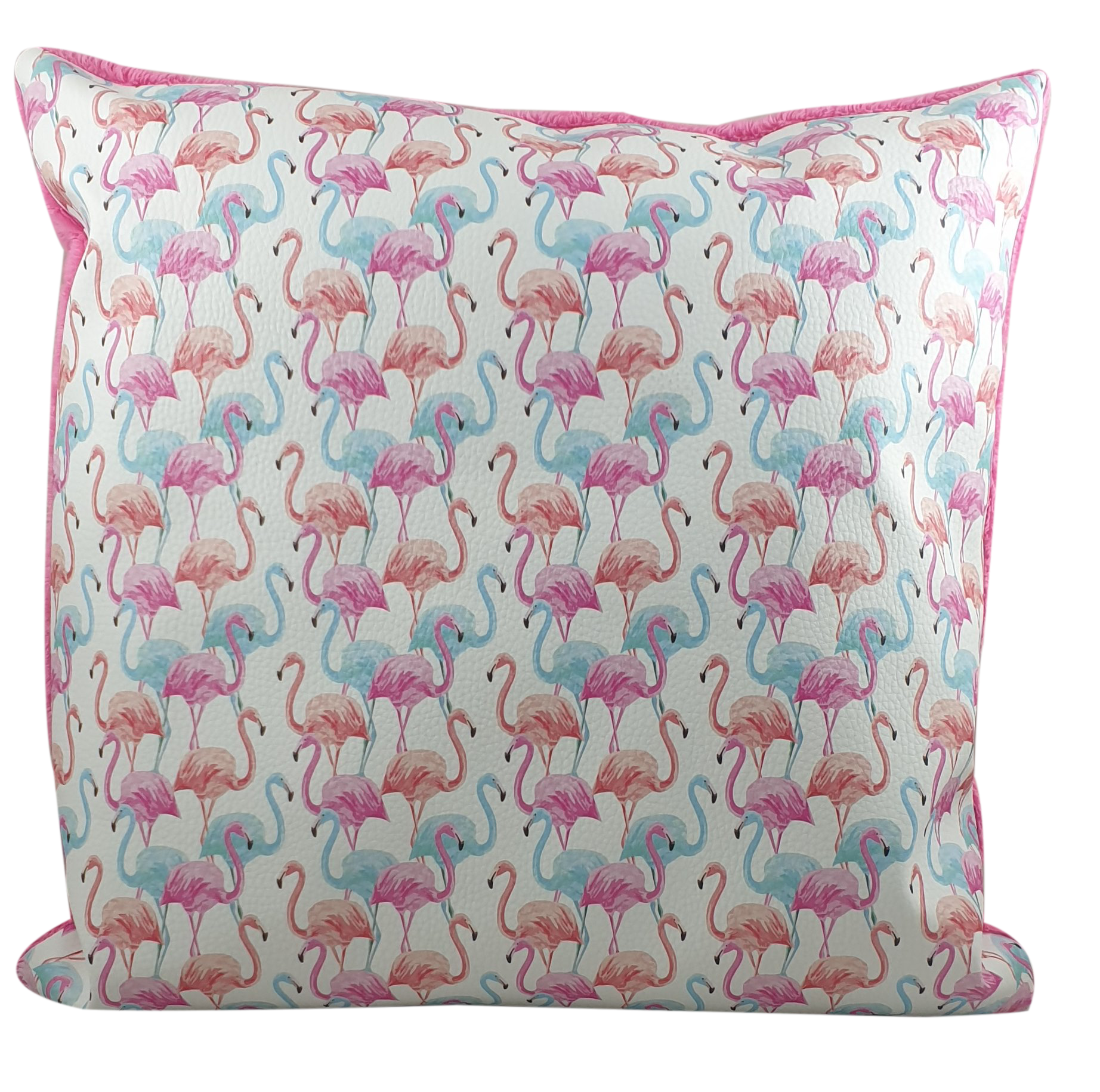 Jedna strona to ekoskóra z nadrukiem (motyw kolorowych flamingów), druga strona to mięciutka tkanina do której z przyjemnością się przytulimy. Wewnątrz jest poduszka z wkładem wysokiej jakości kulki silikonowej.
