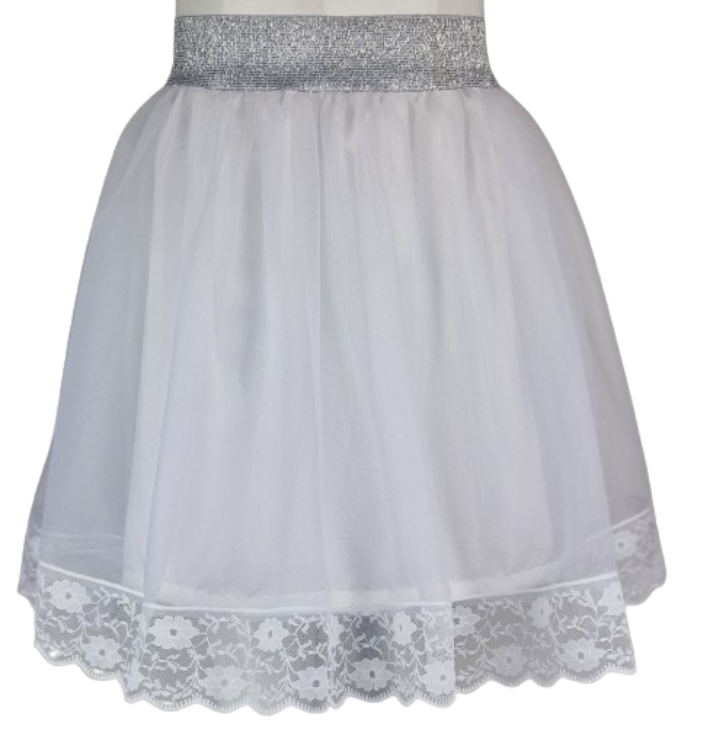 Dziewczęca tiulowa spódniczka to doskonała propozycja dla małych fashionistek, które kochają elegancję. Ta spódniczka zachwyca swoim wyjątkowym designem, łącząc w sobie delikatność tiulu z efektem koronki. Jej subtelność i urok sprawiają, że staje się niezapomnianym elementem każdej dziewczęcej garderoby.