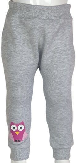 Spodnie dresowe typy baggy, joger uszyte z wysokiej jakości bawełny posiadającej certyfikat oeko-tex standard 100 w kolorze popiel-melanż. Kolor bardzo funkcjonalny, pasujący do innych elementów garderoby. W pasie zastosowany podwójny ściągacz + gumka, na nogawce naszyta aplikacja. Dół spodni zakończony podwójnym ściągaczem. Spodnie z obniżonym krokiem i dopasowanymi nogawkami. Luźne w biodrach.