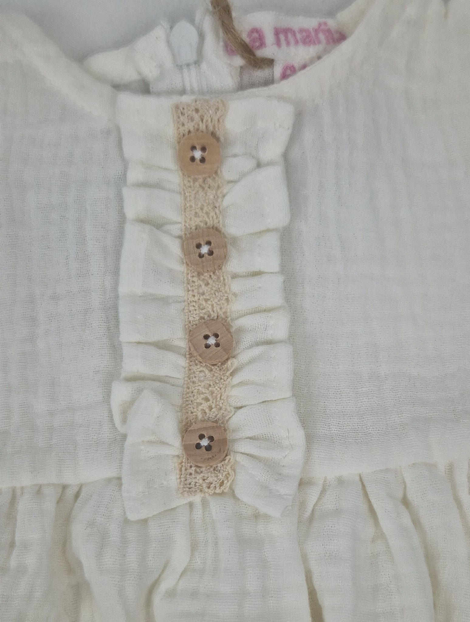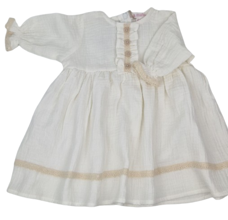 Ta urocza sukienka dla niemowlaka wykonana jest z delikatnego muślinu bawełnianego, zapewniając wyjątkowy komfort i przewiewność dla delikatnej skóry Twojego maluszka. Muślin jest znany ze swojej lekkości i miękkości, co czyni go idealnym materiałem na dziecięce ubranka, szczególnie w cieplejsze dni.